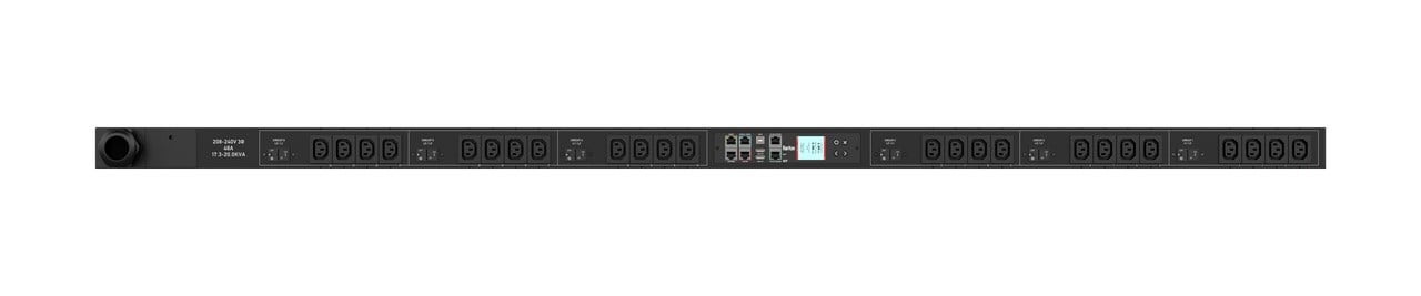 3PH, 208V AC, 60A (48A/PH rated); 24 outlets: 12x C13, 12x C19; plug: IEC 60309 3P+E 9h 60A (Delta Bottom-bottom feed), 17.3kVA; Outlet Metered/Switched, Zero U vertical PDU