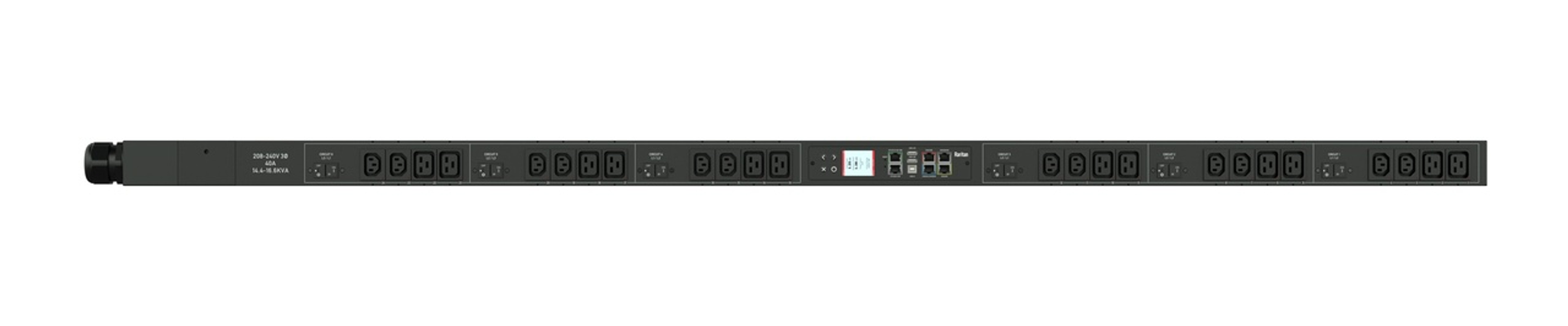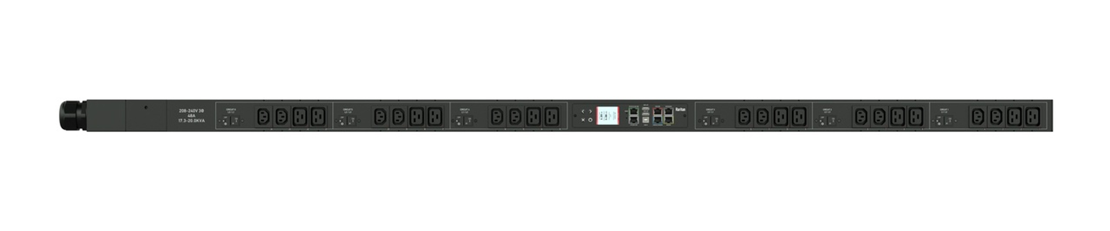 3PH, 208V AC, 60A (48A/PH rated); 24 outlets: 12x C13, 12x C19; plug: IEC 60309 3P+E 9h 60A (Delta Bottom-bottom feed), 17.3kVA; Unit Metered, Zero U vertical PDU