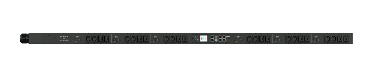 3PH, 208V AC, 60A (48A/PH rated); 24 outlets: 12x C13 Locking, 12x C19 Locking; plug: IEC 60309 3P+E 9h 60A (Delta Bottom-bottom feed), 17.3kVA; Outlet Metered, Zero U vertical PDU
