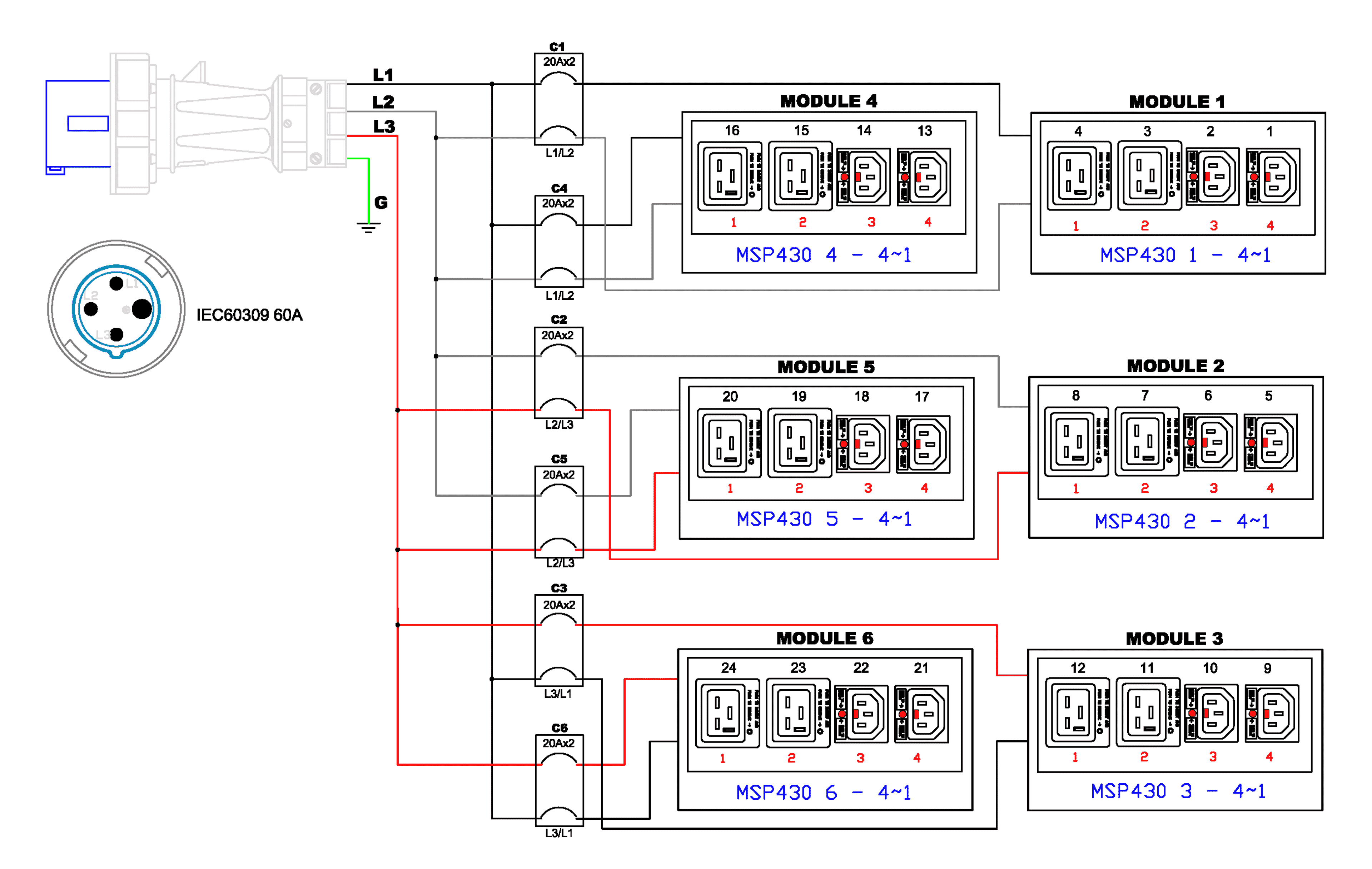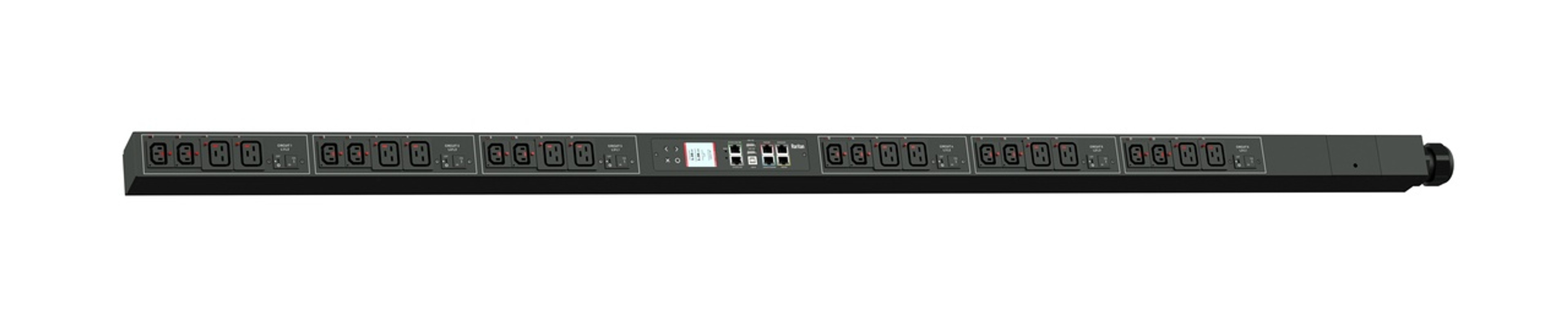 3PH, 208V AC, 60A (48A/PH rated); 24 outlets: 12x C13 Locking, 12x C19 Locking; plug: IEC 60309 3P+E 9h 60A (Delta Top-top feed), 17.3kVA; Outlet Metered, Zero U vertical PDU