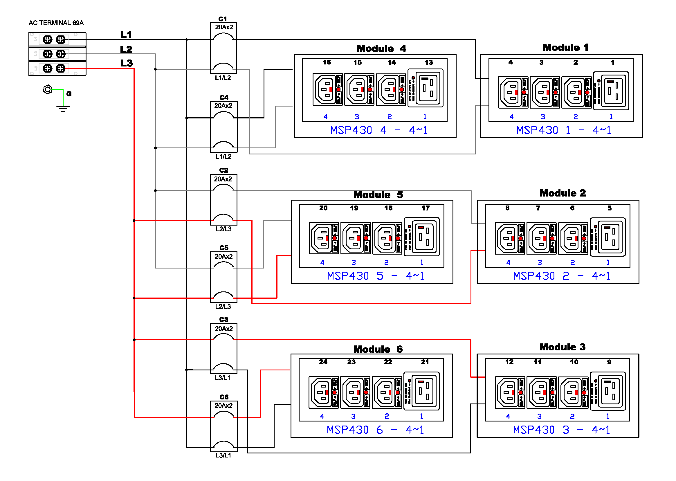 3PH, 208V AC, 60A (48A/PH rated); 24 outlets: 18x C13, 6x C19; plug: AC Terminal (Delta Bottom-bottom feed), 17.3kVA; Outlet Metered/Switched, Zero U vertical PDU