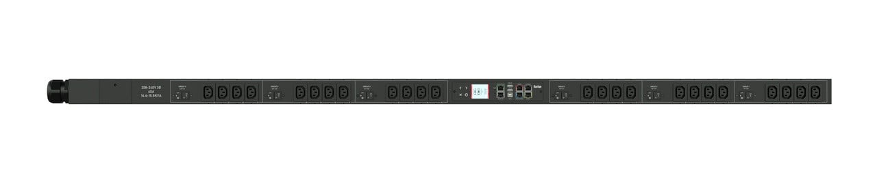 3PH, 208V AC, 60A (48A/PH rated); 24 outlets: 6x C13, 18x C19; plug: IEC 60309 3P+E 9h 60A (Delta Bottom-bottom feed), 17.3kVA; Outlet Metered/Switched, Zero U vertical PDU