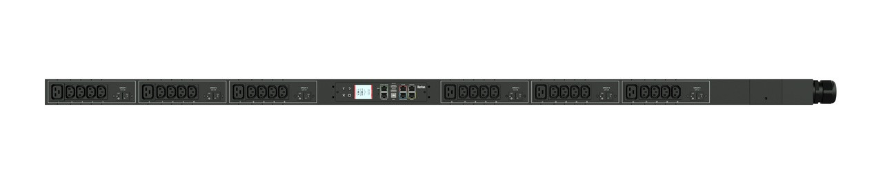 Monitored rack power distribution unit (0U [vertical], 17.3kVA, 30 outlets). INPUT: 208v (3-phase WYE), 48a - Hardwired [Unterminated Cord, No Plug]; OUTPUT: 15@ C13 Locking, 12@ C19 Locking outlets; on 6@ 2-pole, 20a Overcurrent Protectors; FEATURES: Billing-Grade (+/- 1%) Energy Metering [kW, kVA, V, A, Power Factor] - per inlet, per breaker/fuse, per outlet; Remote network monitoring via HTML, JSON-RPC, SSH, Telnet, MODBUS/TCP, and SNMPv3. Onboard embedded processor with minimum 536MHz clock speed, 16MB SPI Flash, and 64MB DDR2 RAM. Cascading upto 16 PDU's using single Ethernet or USB connection. Environmental monitoring [temp/humidity] capable – up to 32 sensors. Individual outlet numbers labeled on chassis. Automated deployment via TFTP, DHCP, SSH(CLI), or USB Flash Drives. WiFi Capable. USB Webcam Capable. iPad/iPhone/Android App. Dual 10/100/1000 Ethernet port. Tri-color status LED per receptacle. Breaker metering and alarming (0V detection). Max Dimensions 89mm x 80mm x 1780mm (3.5in x 3.1in x 70.1in). Max Weight 13.6 kg. Maximum ambient temperature 60C at full load.