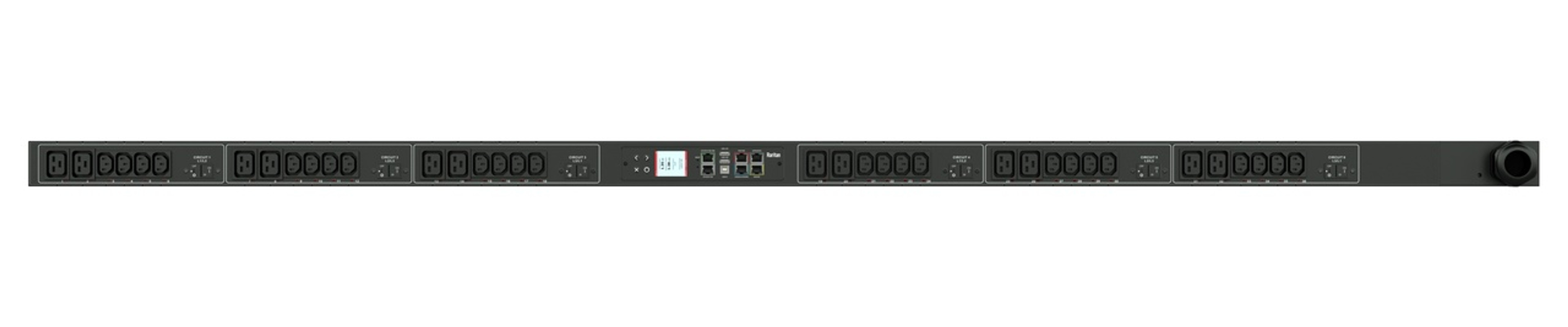 3PH, 208V AC, 60A (48A/PH rated); 36 outlets: 24x C13, 12x C19; plug: IEC 60309 3P+E 9h 60A (Delta Bottom-bottom feed), 17.3kVA; Outlet Metered, Zero U vertical PDU