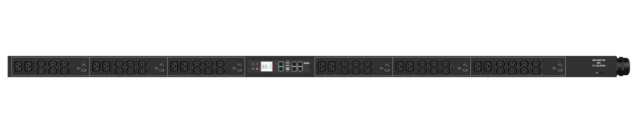 3PH, 208V AC, 60A (48A/PH rated); 45 outlets: 36x C13, 9x C19; plug: IEC 60309 3P+E 9h 60A (Delta Bottom-bottom feed), 17.3kVA; Unit Metered, Zero U vertical PDU
