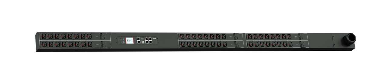 Monitored rack power distribution unit (0U [vertical], 17.3kVA, 48 outlets). INPUT: 208v (3-phase DELTA), 60a - IEC 60309 3P+E 9h 60A plug (3P4W); OUTPUT: 48@ C13 Locking outlets; on 6@ 2-pole, 20a Overcurrent Protectors; FEATURES: Billing-Grade (+/- 1%) Energy Metering [kW, kVA, V, A, Power Factor] - per inlet, per breaker/fuse; Remote network monitoring via HTML, JSON-RPC, SSH, Telnet, MODBUS/TCP, and SNMPv3. Onboard embedded processor with minimum 536MHz clock speed, 16MB SPI Flash, and 64MB DDR2 RAM. Cascading upto 16 PDU's using single Ethernet or USB connection. Environmental monitoring [temp/humidity] capable – up to 32 sensors. Individual outlet numbers labeled on chassis. Automated deployment via TFTP, DHCP, SSH(CLI), or USB Flash Drives. WiFi Capable. USB Webcam Capable. iPad/iPhone/Android App. Dual 10/100/1000 Ethernet port. Breaker metering and alarming (0V detection). Max Dimensions 89mm x 48mm x 1780mm (3.5in x 1.9in x 70.1in). Max Weight TBD. Maximum ambient temperature 60C at full load.