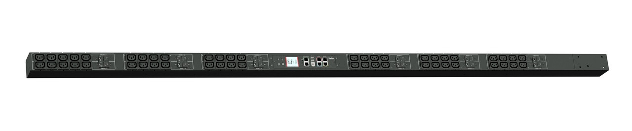 Monitored rack power distribution unit (0U [vertical], 57.5kVA, 50 outlets). INPUT: 415v (3-phase WYE), 80a - Hardwired [AC Terminal Block, No Cord]; OUTPUT: 50@ C13, 12@ outlets; on 12@ 1-pole, 20a Overcurrent Protectors; FEATURES: Billing-Grade (+/- 1%) Energy Metering [kW, kVA, V, A, Power Factor] - per inlet, per breaker/fuse; Remote network monitoring via HTML, JSON-RPC, SSH, Telnet, MODBUS/TCP, and SNMPv3. Onboard embedded processor with minimum 536MHz clock speed, 16MB SPI Flash, and 64MB DDR2 RAM. Cascading upto 16 PDU's using single Ethernet or USB connection. Environmental monitoring [temp/humidity] capable – up to 32 sensors. Individual outlet numbers labeled on chassis. Automated deployment via TFTP, DHCP, SSH(CLI), or USB Flash Drives. WiFi Capable. USB Webcam Capable. iPad/iPhone/Android App. Dual 10/100/1000 Ethernet port. Breaker metering and alarming (0V detection). Max Dimensions 59mm x 80mm x 1981mm (2.3in x 3.1in x 78.0in). Max Weight TBD. Maximum ambient temperature 60C at full load.