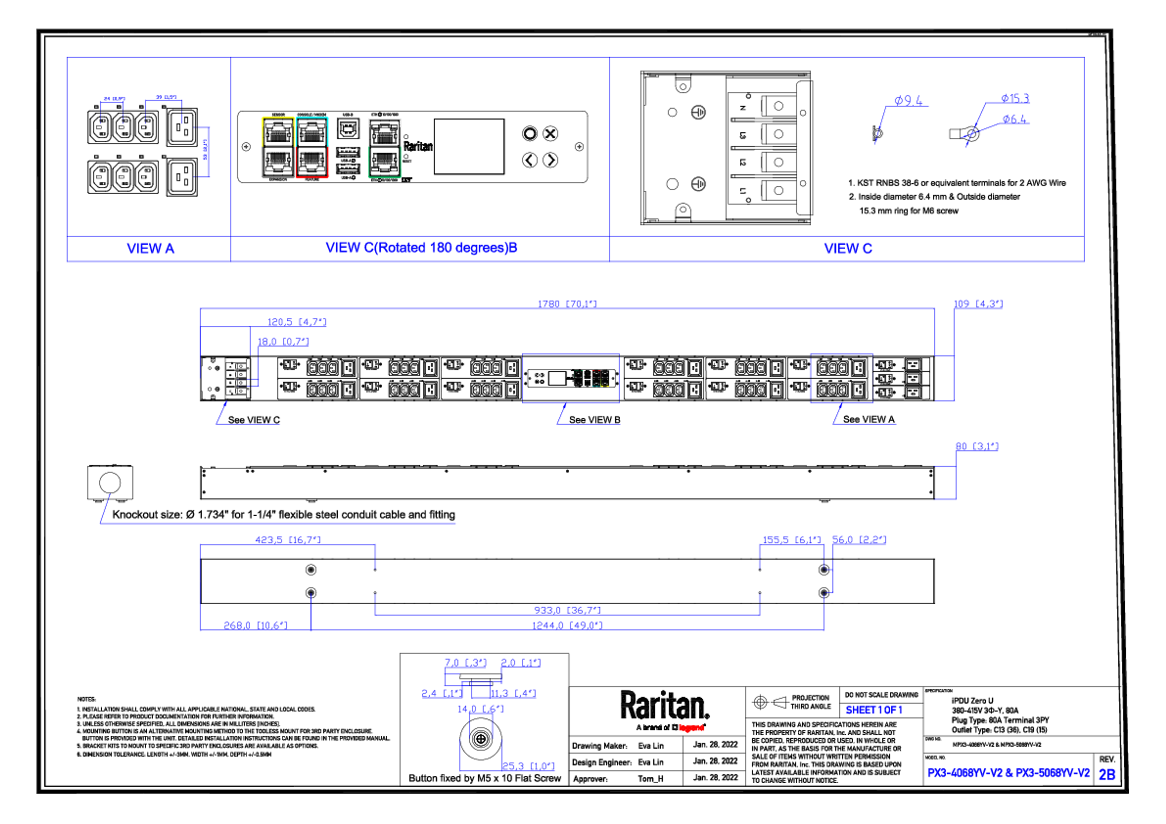 Raritan PX3-4068YV-V2 3PH 400V AC 100A 51outlets Zero U