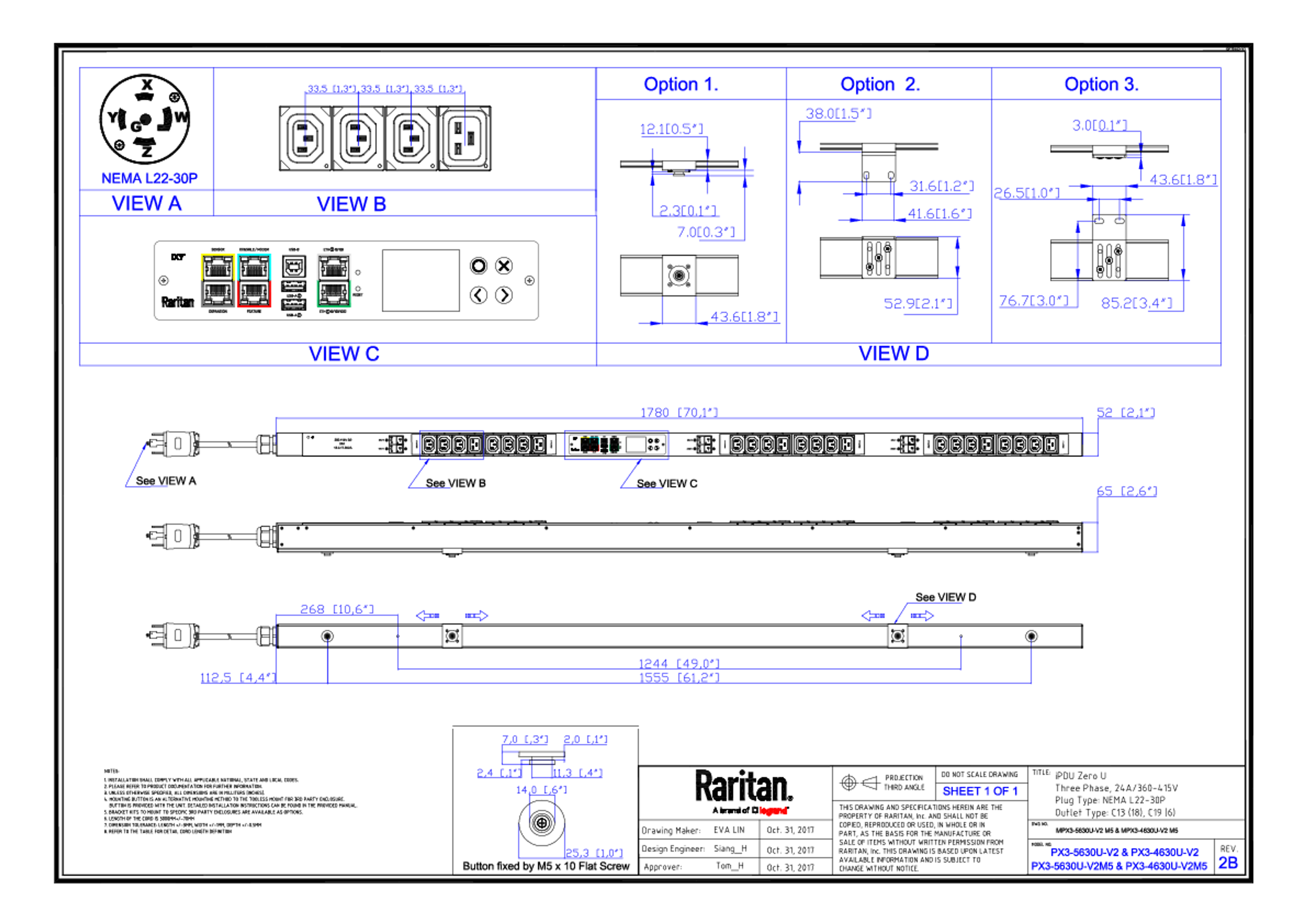 Raritan PX3-5630U-V2 3PH 400V AC 30A 24 outlets Zero U
