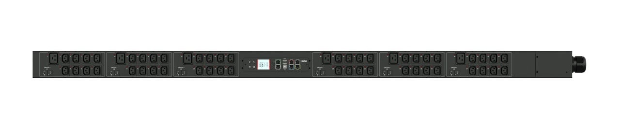 3PH, 400V AC, 60A (40A/PH rated); 54 outlets: 36x C13, 18x C19; plug: IEC 60309 3P+N+E 6h 60A (Wye Bottom-front feed), 27.7kVA; Outlet Metered/Switched, Zero U