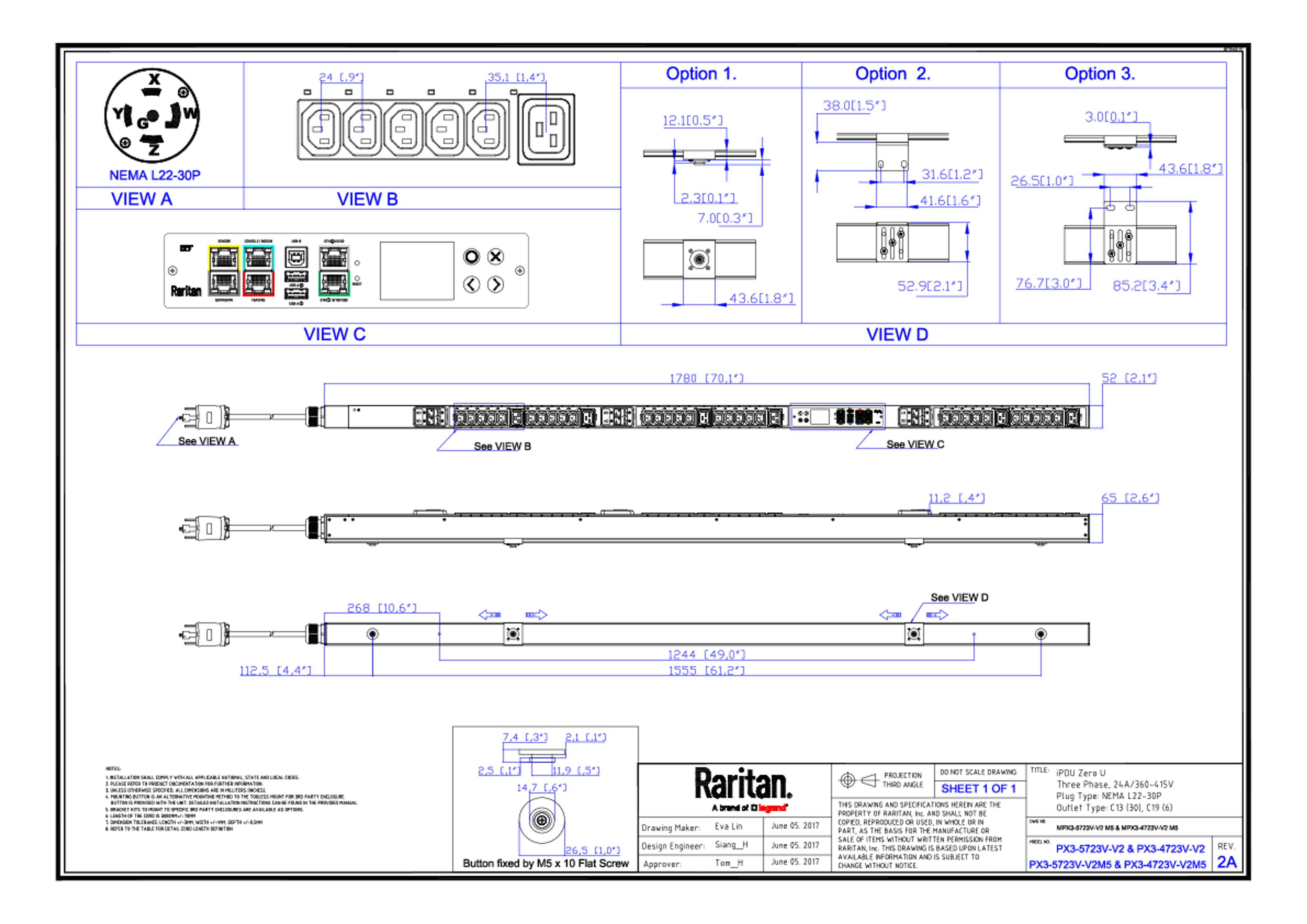 Raritan PX3-5723V-V2 3PH 415V AC 30A 36 outlets Zero U