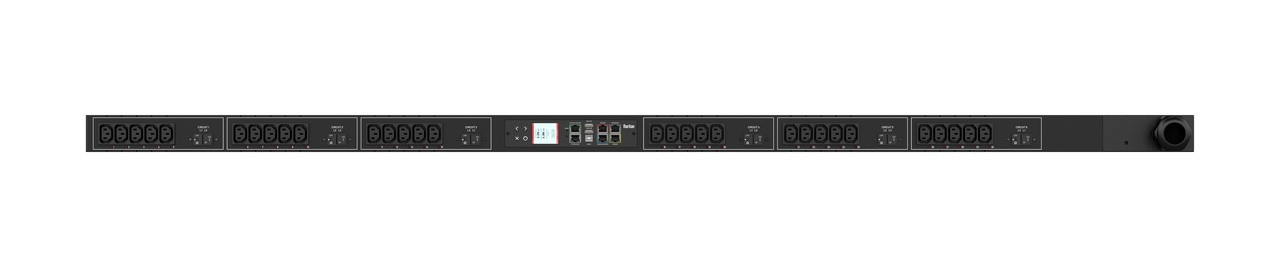 Monitored rack power distribution unit (0U [vertical], 17.3kVA, 48 outlets). INPUT: 208v (3-phase DELTA), 60a - IEC 60309 3P+E 9h 60A plug (3P4W); OUTPUT: 36@ C13 Locking, 12@ C19 Locking outlets; on 6@ 2-pole, 20a Overcurrent Protectors; FEATURES: Billing-Grade (+/- 1%) Energy Metering [kW, kVA, V, A, Power Factor] - per inlet, per breaker/fuse, per outlet; Remote network monitoring via HTML, JSON-RPC, SSH, Telnet, MODBUS/TCP, and SNMPv3. Onboard embedded processor with minimum 536MHz clock speed, 16MB SPI Flash, and 64MB DDR2 RAM. Cascading upto 16 PDU's using single Ethernet or USB connection. Environmental monitoring [temp/humidity] capable – up to 32 sensors. Individual outlet numbers labeled on chassis. Automated deployment via TFTP, DHCP, SSH(CLI), or USB Flash Drives. WiFi Capable. USB Webcam Capable. iPad/iPhone/Android App. Dual 10/100/1000 Ethernet port. Tri-color status LED per receptacle. Breaker metering and alarming (0V detection). Max Dimensions 89mm x 80mm x 1780mm (3.5in x 3.1in x 70.1in). Max Weight TBD. Maximum ambient temperature 60C at full load.