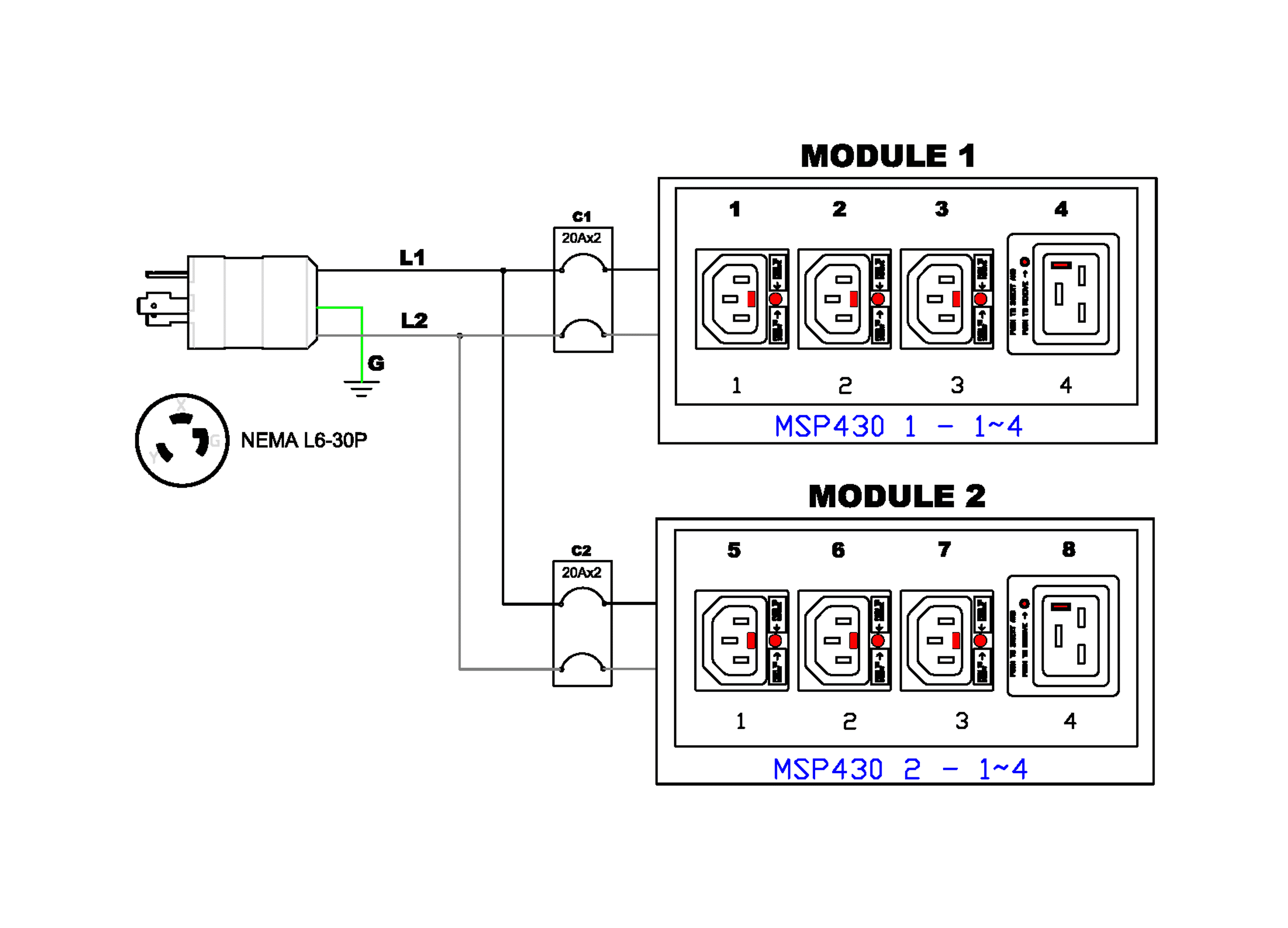 (2) IEC320 C19 Locking
