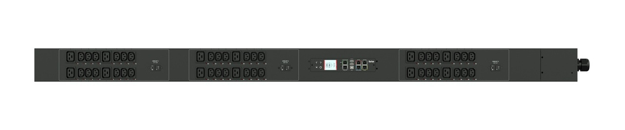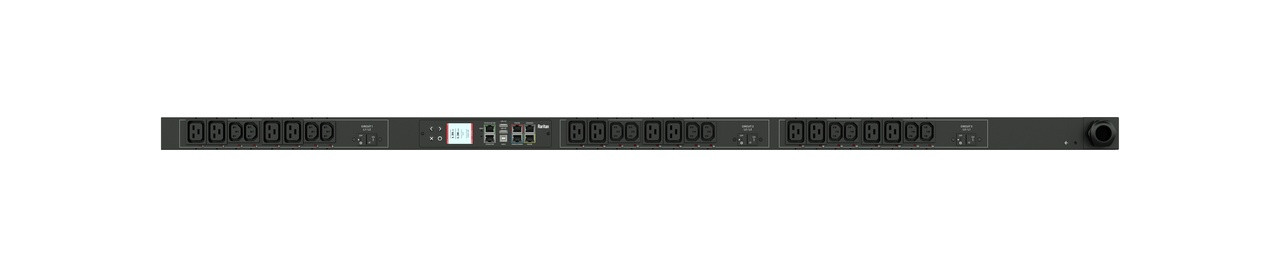 Monitored and switched rack power distribution unit (0U [vertical], 8.6kVA, 30 outlets). INPUT: 208v (3-phase DELTA), 30a - NEMA L15-30P plug (3P4W); OUTPUT: 24@ C13, 6@ C19 outlets; on 3@ 2-pole, 20a Overcurrent Protectors; FEATURES: Billing-Grade (+/- 1%) Energy Metering [kW, kVA, V, A, Power Factor] - per inlet, per breaker/fuse, per outlet; Remote network monitoring via HTML, JSON-RPC, SSH, Telnet, MODBUS/TCP, and SNMPv3. Onboard embedded processor with minimum 536MHz clock speed, 16MB SPI Flash, and 64MB DDR2 RAM. Cascading upto 16 PDU's using single Ethernet or USB connection. Environmental monitoring [temp/humidity] capable – up to 32 sensors. Individual outlet numbers labeled on chassis. Automated deployment via TFTP, DHCP, SSH(CLI), or USB Flash Drives. WiFi Capable. USB Webcam Capable. iPad/iPhone/Android App. Dual 10/100/1000 Ethernet port. Tri-color status LED per receptacle. Breaker metering and alarming (0V detection). Max Dimensions 52mm x 65mm x 1780mm (2.1in x 2.6in x 70.1in). Max Weight 6.5 kg. Maximum ambient temperature 60C at full load.