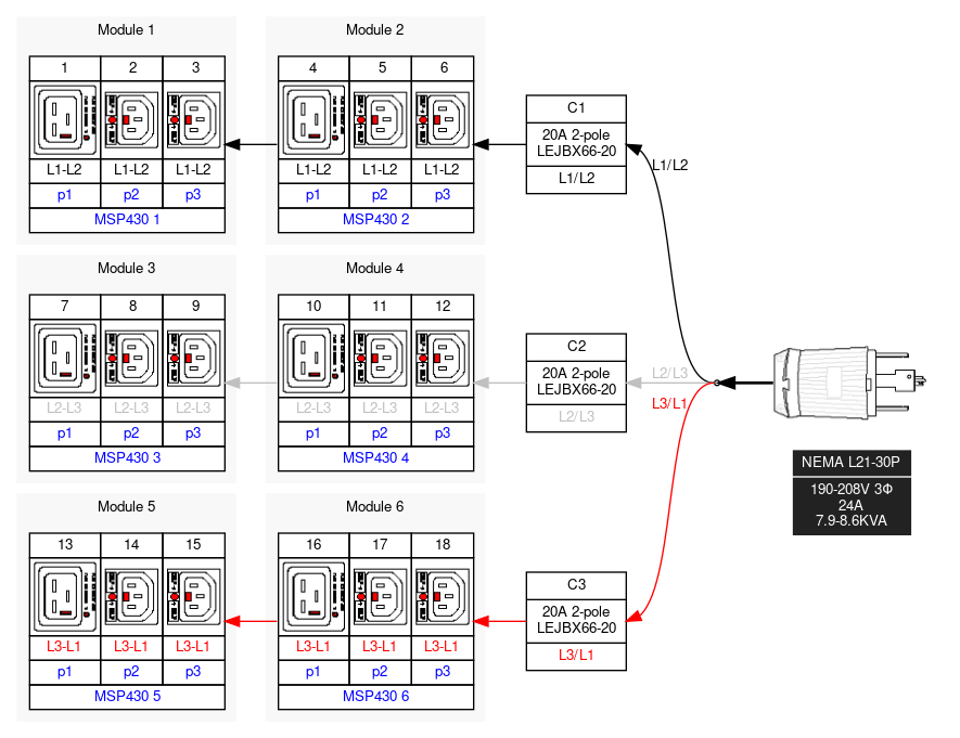 The PX3-4902R-E2 operates on 208V three-phase delta power with a maximum input current of 30 amperes, providing up to 8.6kVA of total power capacity. The unit features a rear-fed Wye configuration through its NEMA L21-30P plug, ensuring reliable power delivery to connected equipment. With its 2U horizontal form factor, this PDU efficiently utilizes rack space while providing extensive outlet availability for high-density server deployments.