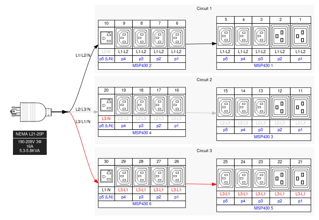 (21) C13, (6) C19, (3) NEMA 520R