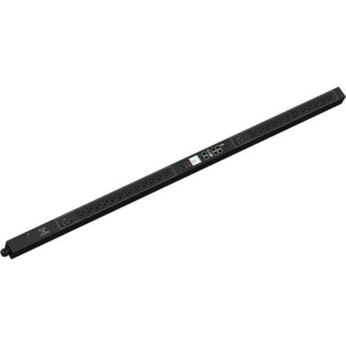 Monitored and switched rack power distribution unit (0U [vertical], 3.7kVA, 24 outlets). INPUT: 230v, 16a - IEC 60309 2P+E 6h 16A plug (2P3W); OUTPUT: 24@ C13 outlets; FEATURES: Billing-Grade (+/- 1%) Energy Metering [kW, kVA, V, A, Power Factor] - per inlet, per outlet; Remote network monitoring via HTML, JSON-RPC, SSH, Telnet, MODBUS/TCP, and SNMPv3. Onboard embedded processor with minimum 536MHz clock speed, 16MB SPI Flash, and 64MB DDR2 RAM. Cascading upto 16 PDU's using single Ethernet or USB connection. Environmental monitoring [temp/humidity] capable – up to 32 sensors. Individual outlet numbers labeled on chassis. Automated deployment via TFTP, DHCP, SSH(CLI), or USB Flash Drives. WiFi Capable. USB Webcam Capable. iPad/iPhone/Android App. Dual 10/100/1000 Ethernet port. Tri-color status LED per receptacle. Max Dimensions 52mm x 65mm x 1298mm (2.1in x 2.6in x 51.1in). Max Weight 3.6 kg. Maximum ambient temperature 60C at full load.