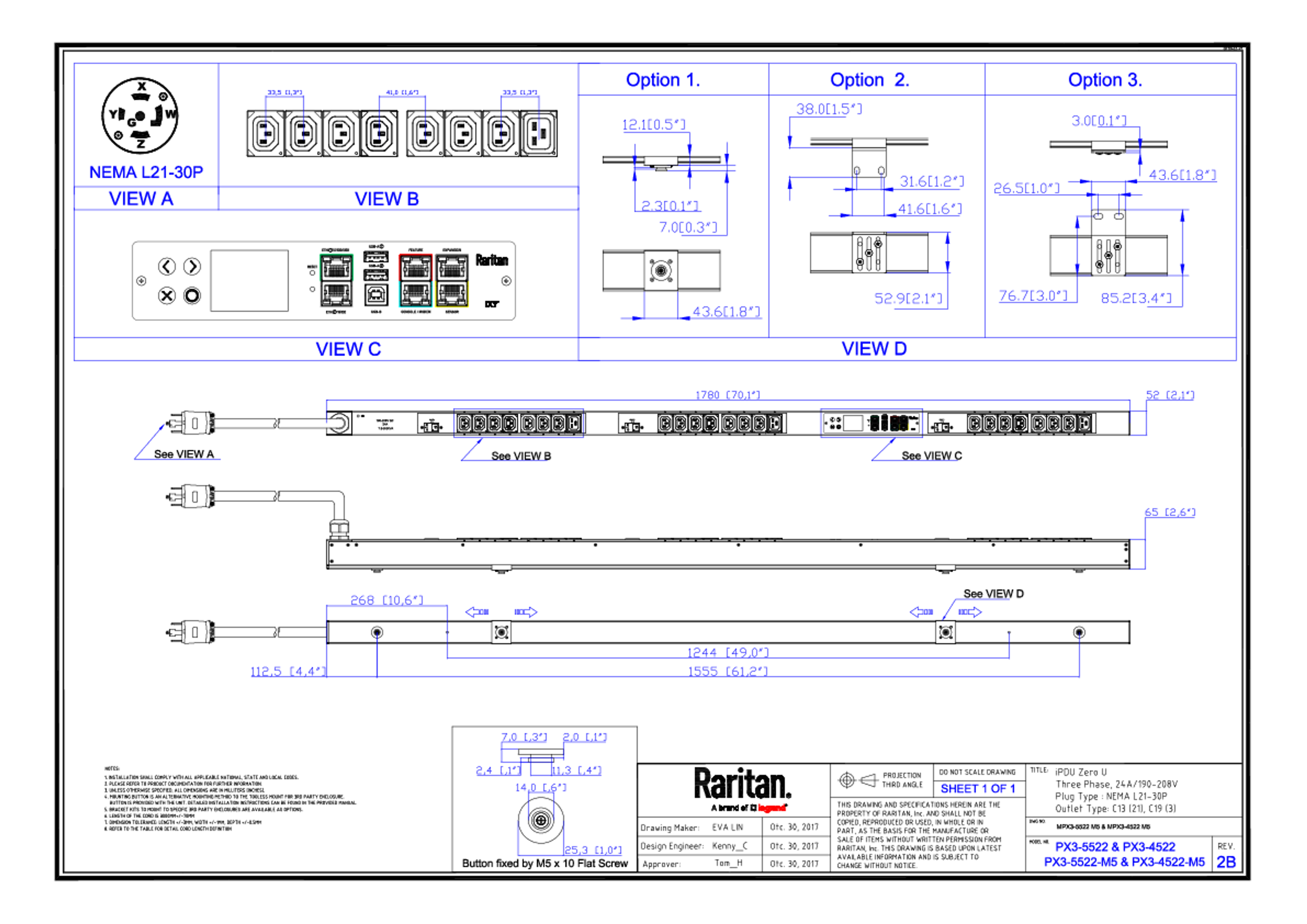 Raritan PX3-5522 3PH 208V AC 30A 24 outlets