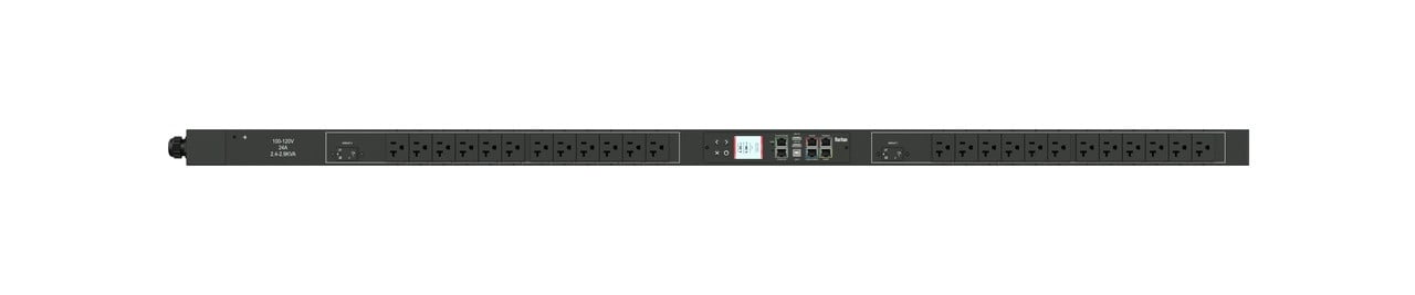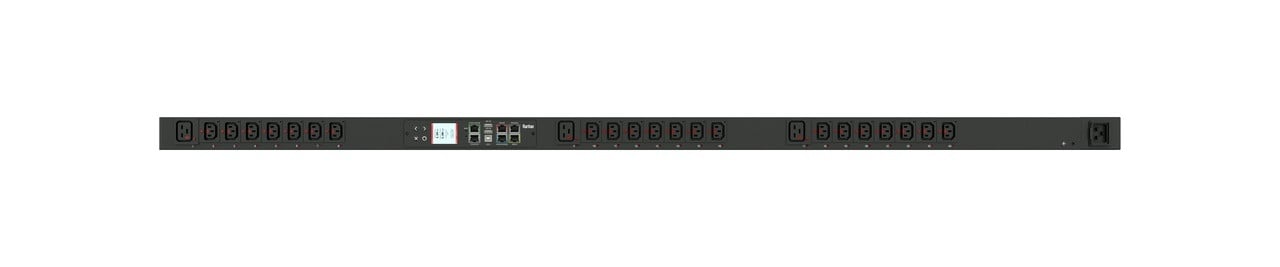 Monitored and switched rack power distribution unit (0U [vertical], 8.6kVA, 24 outlets). INPUT: 208v (3-phase DELTA), 30a - NEMA L15-30P plug (3P4W); OUTPUT: 18@ C13 Locking, 6@ C19 Locking outlets; on 3@ 2-pole, 20a Overcurrent Protectors; FEATURES: Billing-Grade (+/- 1%) Energy Metering [kW, kVA, V, A, Power Factor] - per inlet, per breaker/fuse, per outlet; Remote network monitoring via HTML, JSON-RPC, SSH, Telnet, MODBUS/TCP, and SNMPv3. Onboard embedded processor with minimum 536MHz clock speed, 16MB SPI Flash, and 64MB DDR2 RAM. Cascading upto 16 PDU's using single Ethernet or USB connection. Environmental monitoring [temp/humidity] capable – up to 32 sensors. Individual outlet numbers labeled on chassis. Automated deployment via TFTP, DHCP, SSH(CLI), or USB Flash Drives. WiFi Capable. USB Webcam Capable. iPad/iPhone/Android App. Dual 10/100/1000 Ethernet port. Tri-color status LED per receptacle. Breaker metering and alarming (0V detection). Max Dimensions 52mm x 71mm x 1780mm (2.1in x 2.8in x 70.1in). Max Weight 6.8 kg. Maximum ambient temperature 60C at full load.