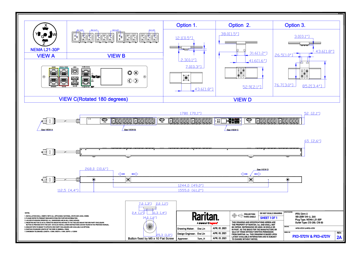 3PH, 208V AC, 30A (24A/PH rated); 36 outlets: 30x C13, 6x C19; plug: NEMA L21-30P (Wye Bottom-bottom feed), 8.6kVA; Outlet Metered/Switched, Zero U vertical PDU, SecureLock ready, high resolution color display with field replaceable controller, Ethernet, serial, 2x USB-A, USB-B and sensor connections