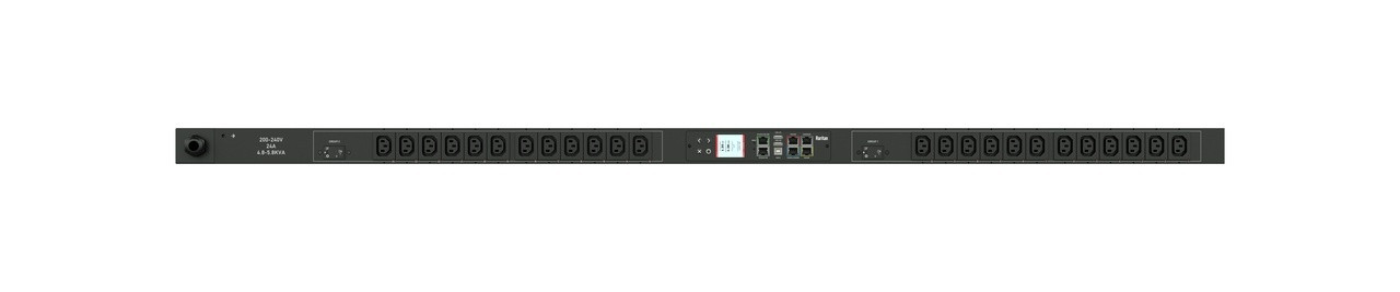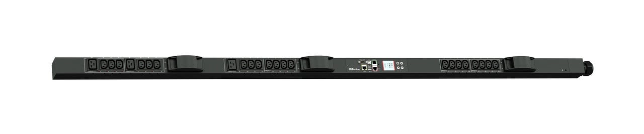 Monitored and switched rack power distribution unit (0U [vertical], 10kVA, 36 outlets). INPUT: 208v, 60a - IEC 60309 2P+E 6h 60A plug (2P3W); OUTPUT: 24@ C13, 12@ C19 outlets; on 3@ 2-pole, 20a Overcurrent Protectors; FEATURES: Billing-Grade (+/- 1%) Energy Metering [kW, kVA, V, A, Power Factor] - per inlet, per breaker/fuse, per outlet; Remote network monitoring via HTML, JSON-RPC, SSH, Telnet, MODBUS/TCP, and SNMPv3. Onboard embedded processor with minimum 536MHz clock speed, 16MB SPI Flash, and 64MB DDR2 RAM. Cascading upto 16 PDU's using single Ethernet or USB connection. Environmental monitoring [temp/humidity] capable – up to 32 sensors. Individual outlet numbers labeled on chassis. Automated deployment via TFTP, DHCP, SSH(CLI), or USB Flash Drives. WiFi Capable. USB Webcam Capable. iPad/iPhone/Android App. Dual 10/100/1000 Ethernet port. Tri-color status LED per receptacle. Breaker metering and alarming (0V detection). Max Dimensions 52mm x 65mm x 1780mm (2.1in x 2.6in x 70.1in). Max Weight TBD. Maximum ambient temperature 60C at full load.