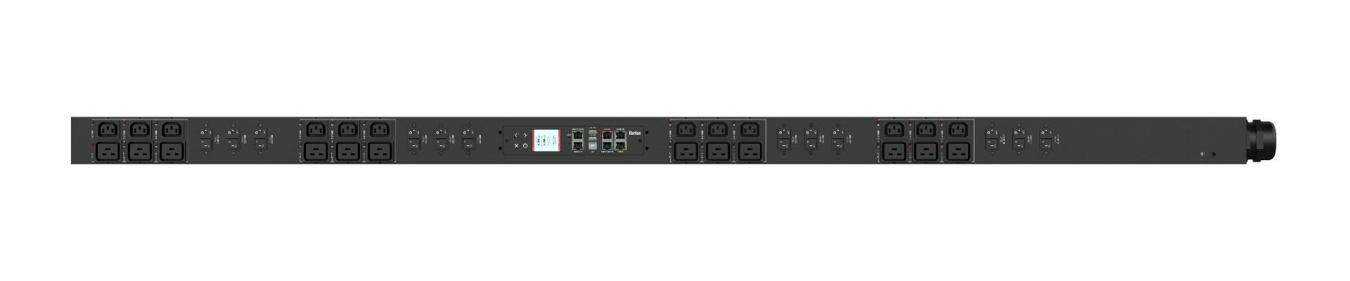 3PH, 208V AC, 60A (48A/PH rated); 48 outlets: 48x C13; plug: IEC 60309 3P+E 9h 60A (Delta Bottom-bottom feed), 17.3kVA; Outlet Metered/Switched, Zero U vertical PDU, V2 Outlet Sequence, high resolution color display with field replaceable controller, Ethernet, serial, 2x USB-A, USB-B and sensor connections