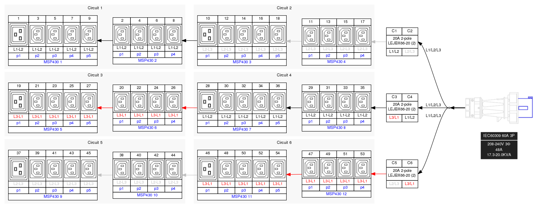 The PX3-5785U-O1V2 operates on 3-phase 208V AC power with a 60A input current rating (48A per phase). The unit features an IEC 60309 3P+E 9h 60A delta top-top feed plug configuration, ensuring reliable high-current connectivity. With its 0U vertical form factor, this PDU maximizes rack space efficiency while providing comprehensive power distribution.