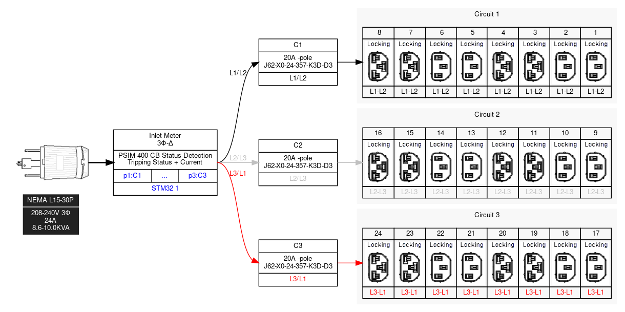 3PH, 208V, 30A (derated to 24A), 24 Outlets: 12 x Locking C13, 12 x Locking Cx, Input: NEMA L15-30P, 0U, 8.6kVA, 3 x 10kAIC breakers, Input Metered, iX controller with 2 x 10/100/1000 ETH port, 2 x USB-A, 1 x USB-B, RJ-45 Sensor and PDU Link port. This product is designed for modern data centers and enterprise environments, ensuring reliable power management and advanced monitoring capabilities.