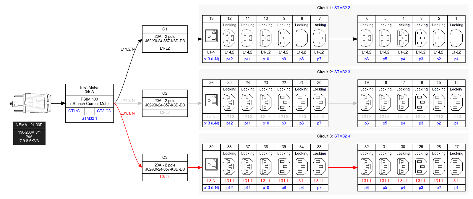 3PH, 208V, 30A (derated to 24A), 39 Outlets: 18 x Locking C13, 18 x Locking Cx, 3 x NEMA 5-20R,Input: NEMA L21-30P, 0U, 8.6kVA, 3 x 10kAIC breakers, Input Metered, iX controller with 2 x 10/100/1000 ETH port, 2 x USB-A, 1 x USB-B, RJ-45 Sensor and PDU Link port. This product is designed for modern data centers and enterprise environments, ensuring reliable power management and advanced monitoring capabilities.