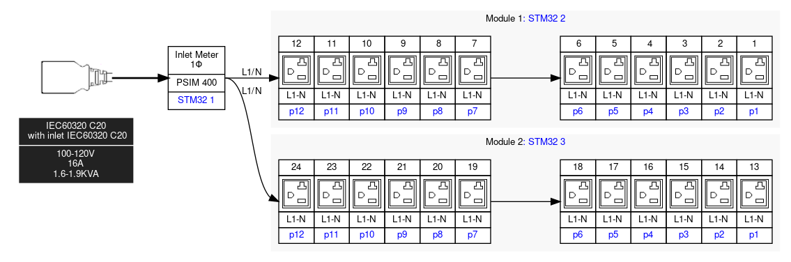 1PH, 120V, 20A (derated to 16A), 24 Outlets: 24 x NEMA 5-20R, Input: IEC 60320, 0U, 1.9kVA, Input Metered/Switched, iX controller with 2 x 10/100/1000 ETH port, 2 x USB-A, 1 x USB-B, RJ-45 Sensor and PDU Link port. This product is designed for modern data centers and enterprise environments, ensuring reliable power management and advanced monitoring capabilities.