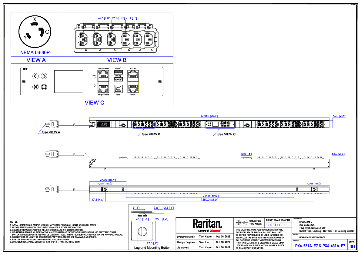 1PH, 208V, 30A (derated to 24A), 36 Outlets: 18 x Locking C13, 18 x Locking Cx, Input: NEMA L6-30P, 0U, 5.0kVA, 2 x 10kAIC breakers, Outlet Metered and Switched, iX controller with 2 x 10/100/1000 ETH port, 2 x USB-A, 1 x USB-B, RJ-45 Sensor and PDU Link port