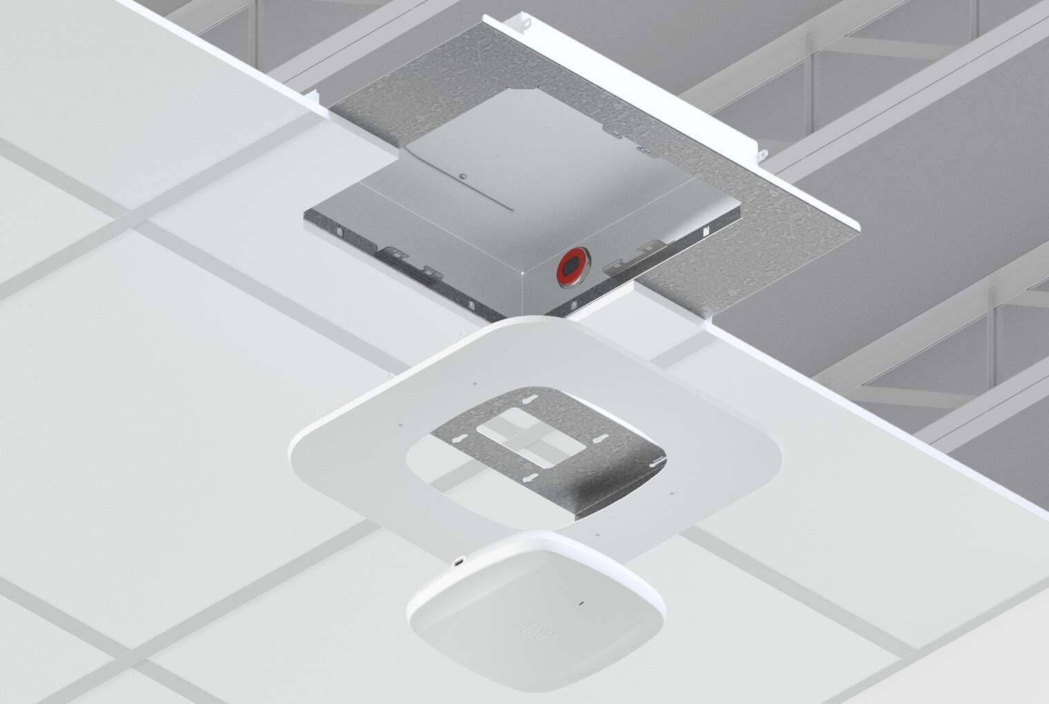 Recessed Suspended Ceiling Tile Access Point Mount, 3.5"H x 14"W x 14"D (89 mm x 360 mm x 360 mm) Back Box, Spring-Attached Cisco Wireless CW9178 Access Point Trim