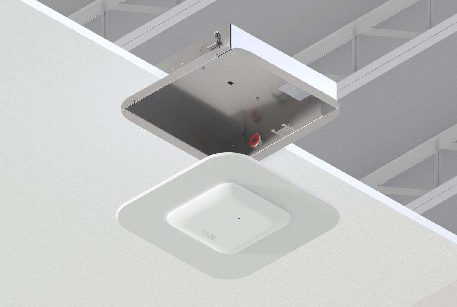 Recessed Wall & Hard-Lid Ceiling Access Point Mount for Existing Construction, 3"H x 14"W x 14"D (76 mm x 360 mm x 360 mm) Back Box, Spring-Attached Juniper AP47 Trim
