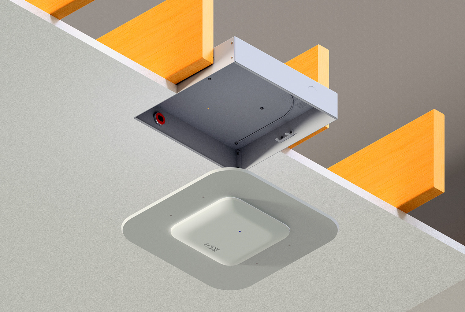 Recessed Wall & Hard-Lid Ceiling Access Point Mount for New Construction, 3"H x 14"W x 14"D (76 mm x 360 mm x 360 mm) Back Box, Spring-Attached Juniper AP47 Trim