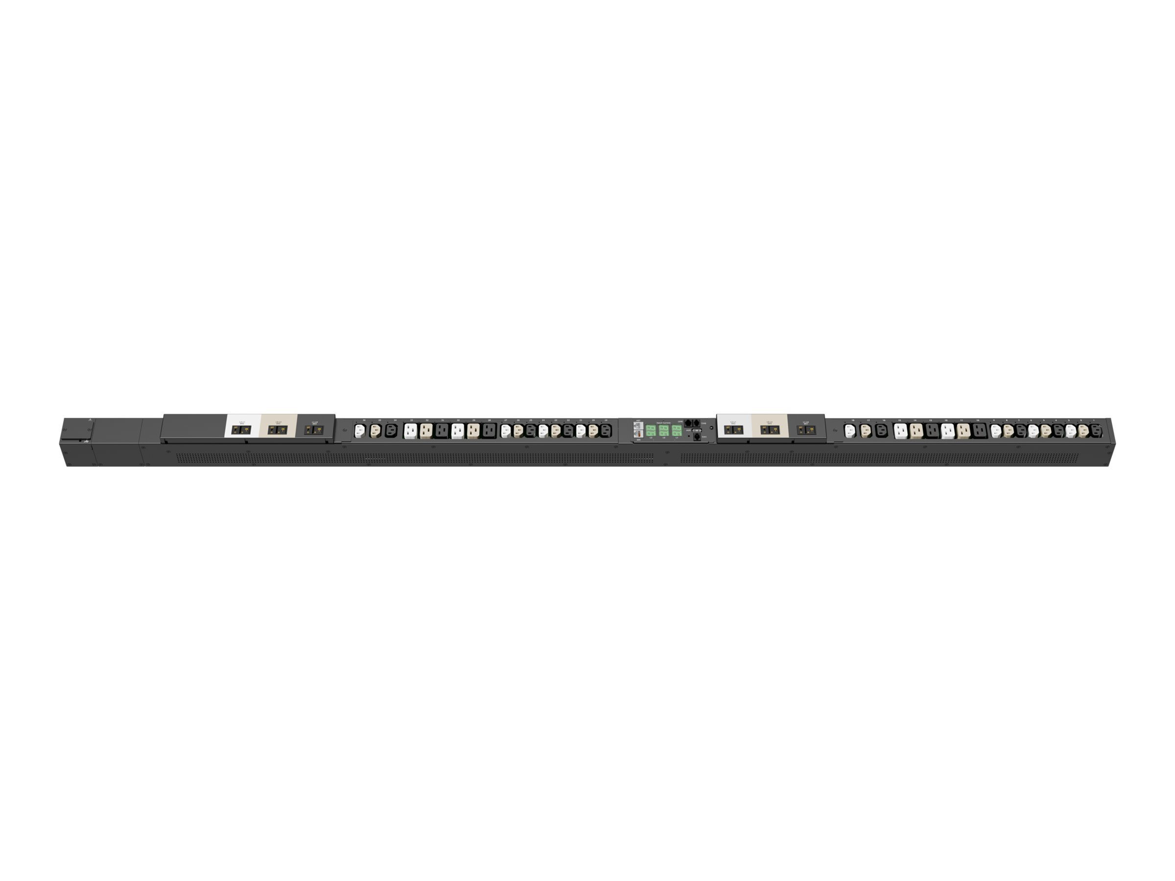 The Server Technology® PRO2 Switched POPS PDU provides control of outlet power and local LED input current monitoring, allowing IT personnel to determine safe levels of loading on a per-phase basis while installing equipment into the rack/cabinet. The integral PIPS® and POPS® technology provides billing-grade accurate measurement of current, voltage, active power, apparent power, power factor, crest factor, and accumulated energy at the input and at each output. These power data points, along with temperature and humidity measurements (provided via optional probes), are accessible through the built-in Web and CLI interfaces as well as through SNMP. The PRO2 Switched POPS "Primary" PDU can be connected to as many as three (with optional module) PRO2 Switched POPS "Link" PDUs to extend the network access to the redundant or secondary power feed without the risks of a daisy chain linking configuration.