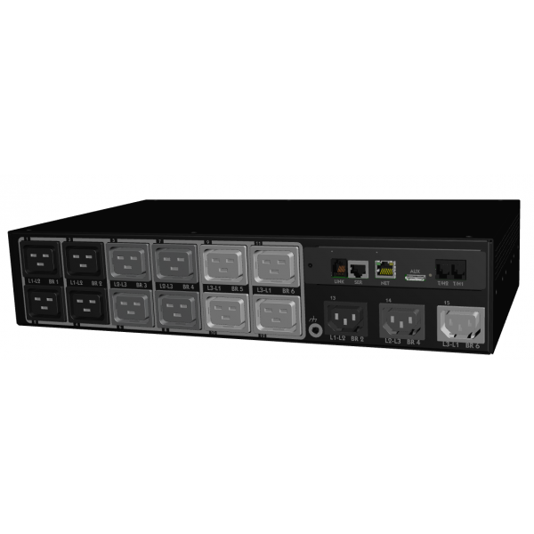Smart Expansion PRO1 with PIPS (Per Input Power Sensing), 2U, 12xC19 and 3xC13 Alt-Phase Receptacles, 3 LED Input Amp Meters, 240/415V 3-Phase Wye 30A, 10 ft (3 m) Cord, IEC 60309 6hr 5Pin Red plug, Circuit Breakers, 2 x Temp/Humid Capable