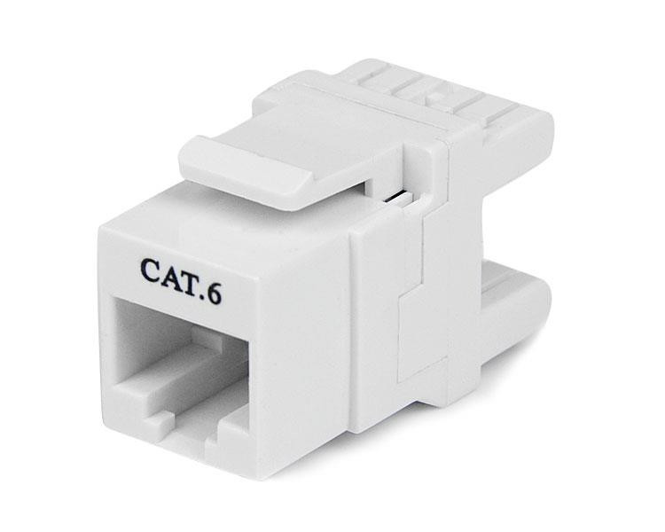 180° Cat 6 Keystone Jack - RJ45 Ethernet Cat6 Wall Jack White - 110 Type - Terminate Cat6 cables at a 180° angle, for a more compact keystone jack installation