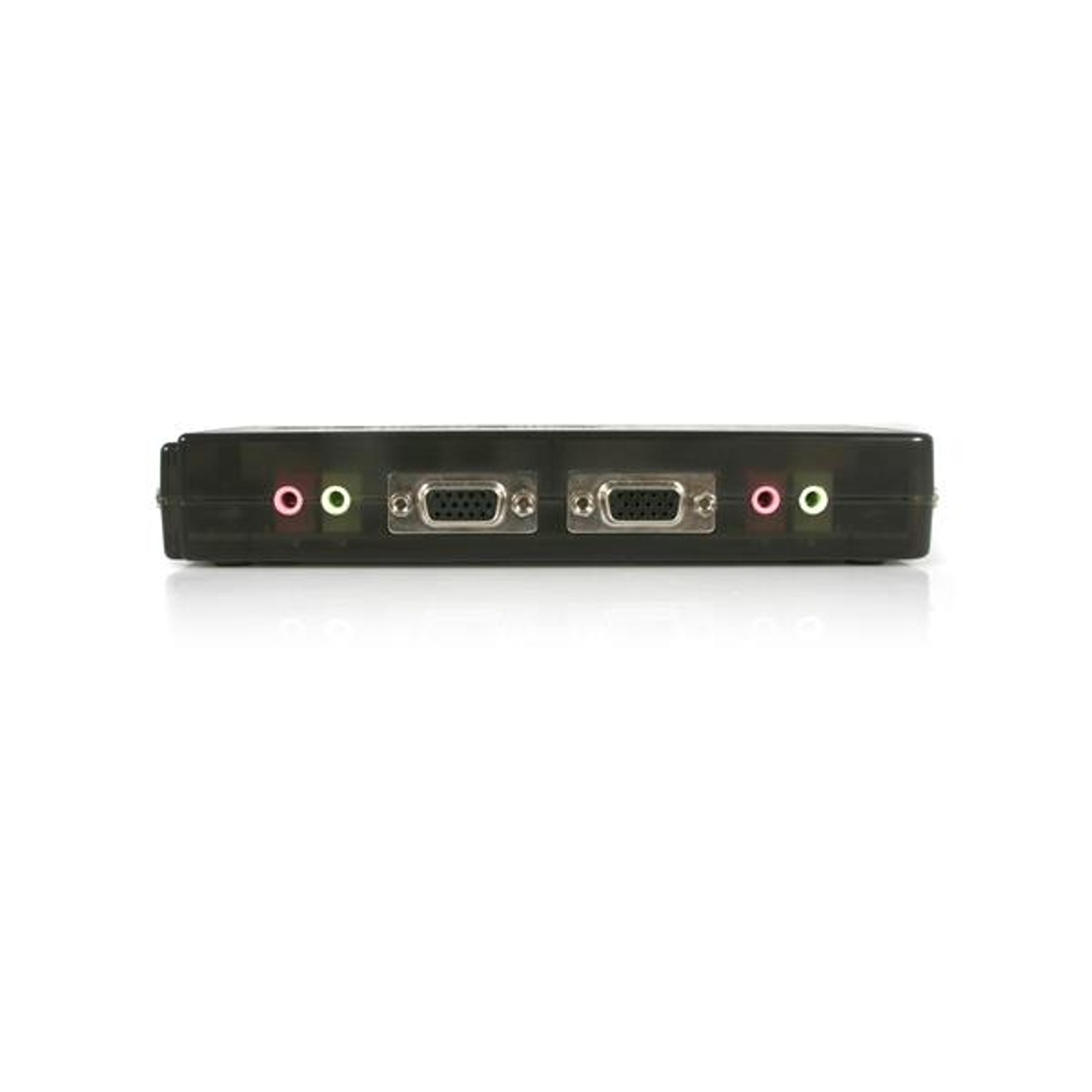 The SV411KUSB 4 Port USB KVM Switch Kit with Audio and Cables lets you control up to four USB-enabled computers using a single keyboard, mouse and VGA monitor and offers both hotkey and top panel push-button operation for simple switching between connected computers.