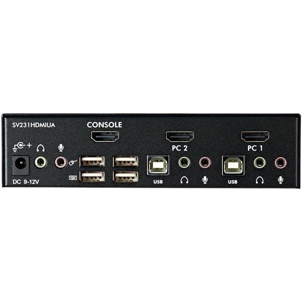 The SV231HDMIUA 2-port USB HDMI® KVM Switch lets you control two USB-enabled multimedia computers or devices with HDMI video interfaces, using a single peripheral set/console (USB keyboard, mouse, monitor, speakers and microphone).