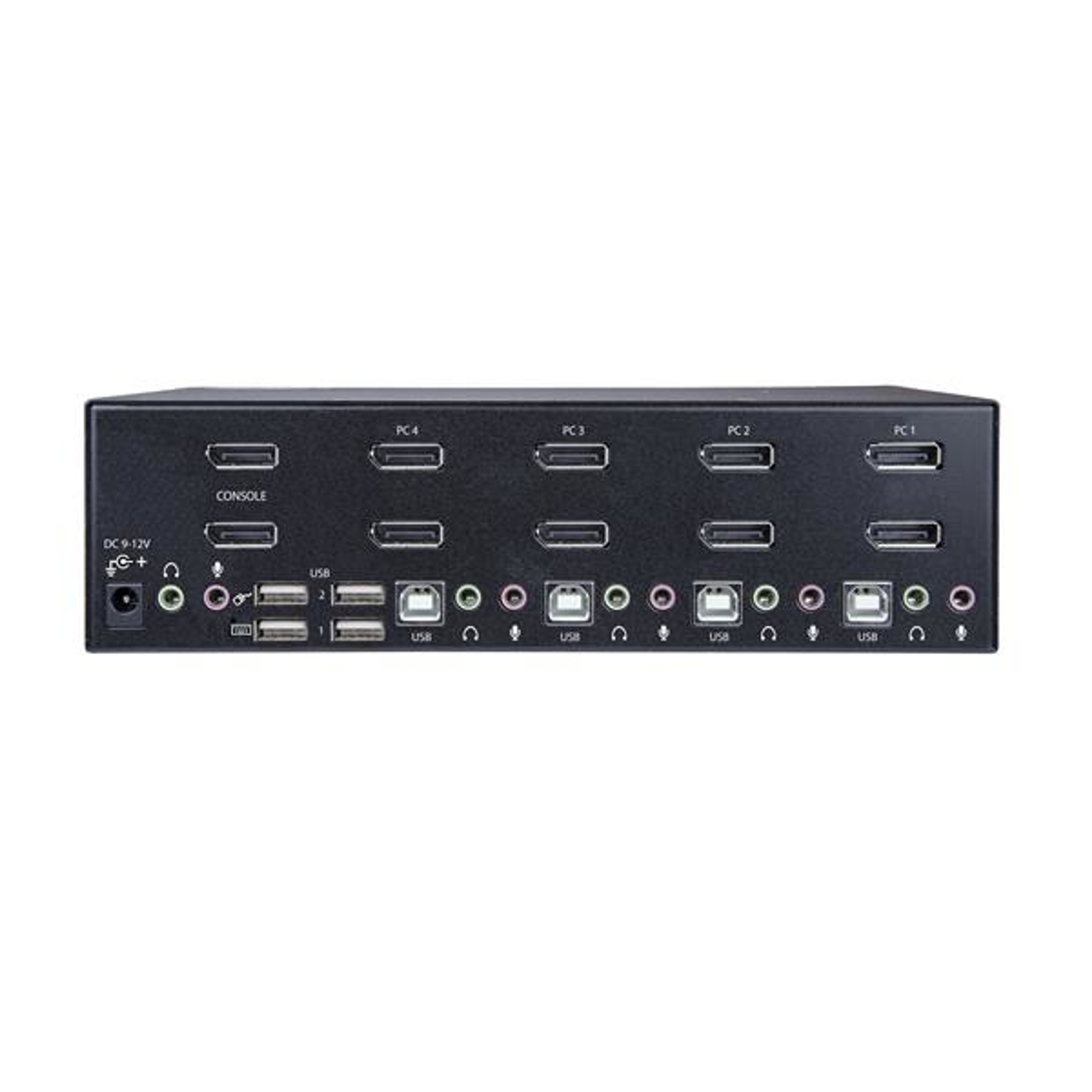 This 4-port dual DP KVM switch combines dual 4K 60Hz displays with KVM switch control of four connected PC and Mac computers. It features audio and USB peripheral support along with dual-display capability, which makes it easy to create a multimedia workstation that can switch between two dual-head DP systems.