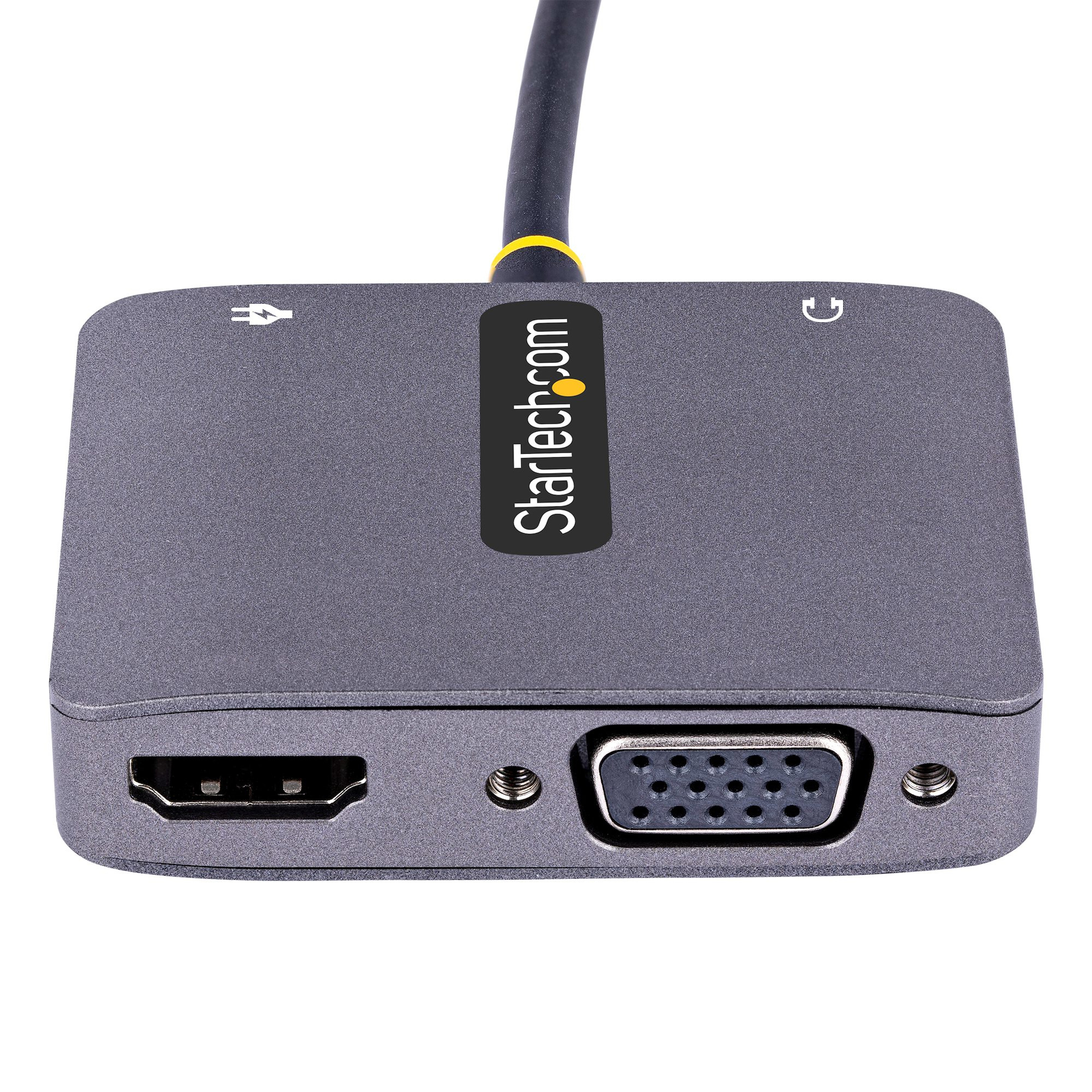 Enhance your connectivity with the StarTech.com 122-USBC-HDMI-4K-VGA USB graphics adapter. This versatile device allows you to connect USB Type-C devices to HDMI and VGA displays, supporting resolutions up to 4K at 60Hz and 1920x1200 at 60Hz respectively. With its 100W Power Delivery pass-through feature, you can charge your laptop while using the adapter, making it perfect for on-the-go professionals.