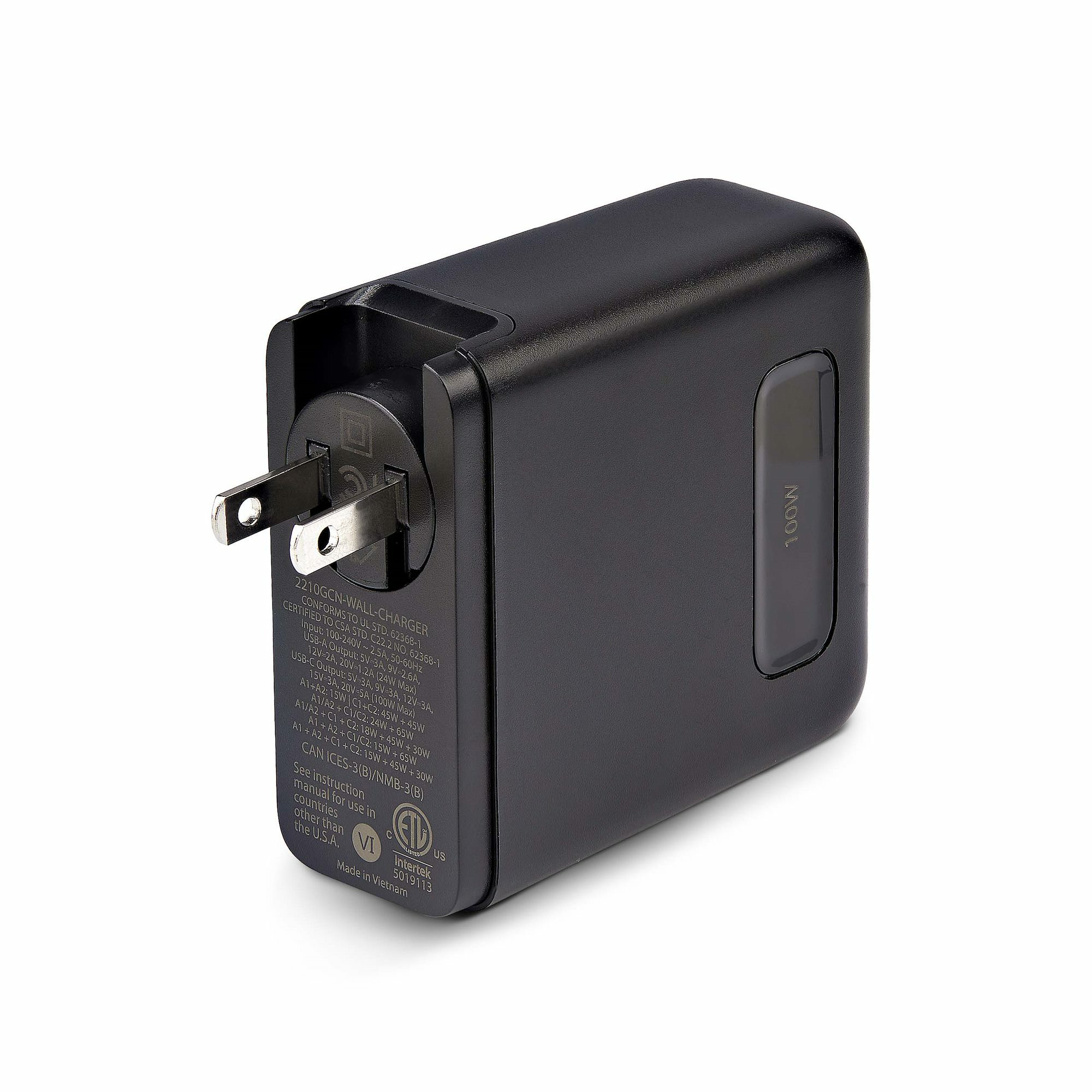 Experience fast and efficient charging with the StarTech.com 2210GCN-WALL-CHARGER, a versatile 100W USB GaN Charger designed for all your USB devices. This compact travel adapter features: