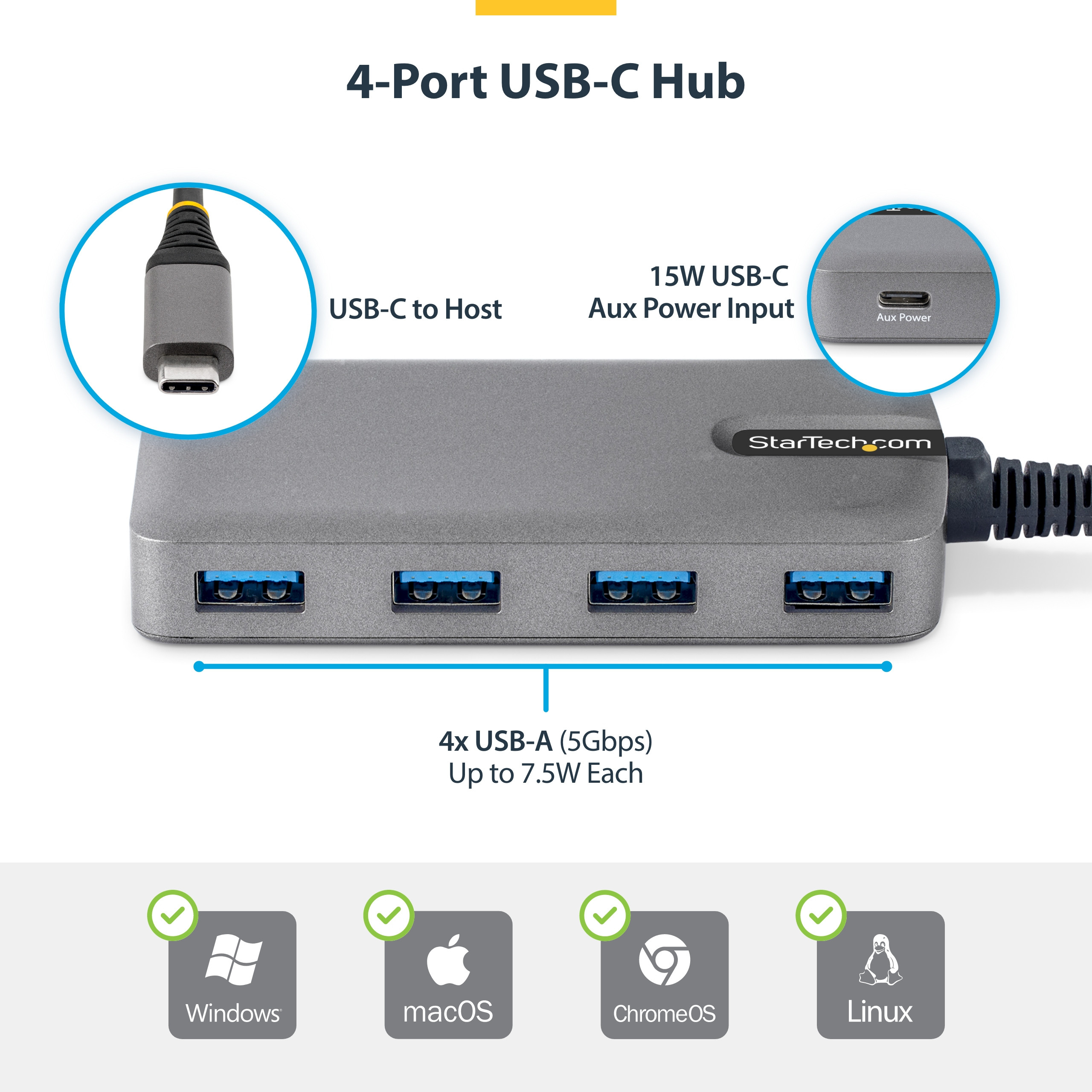 Whether you are in an office, classroom, or on the go, the 5G4AC-USB-C-HUB is the perfect solution to expand your USB connectivity and keep your devices powered and connected.