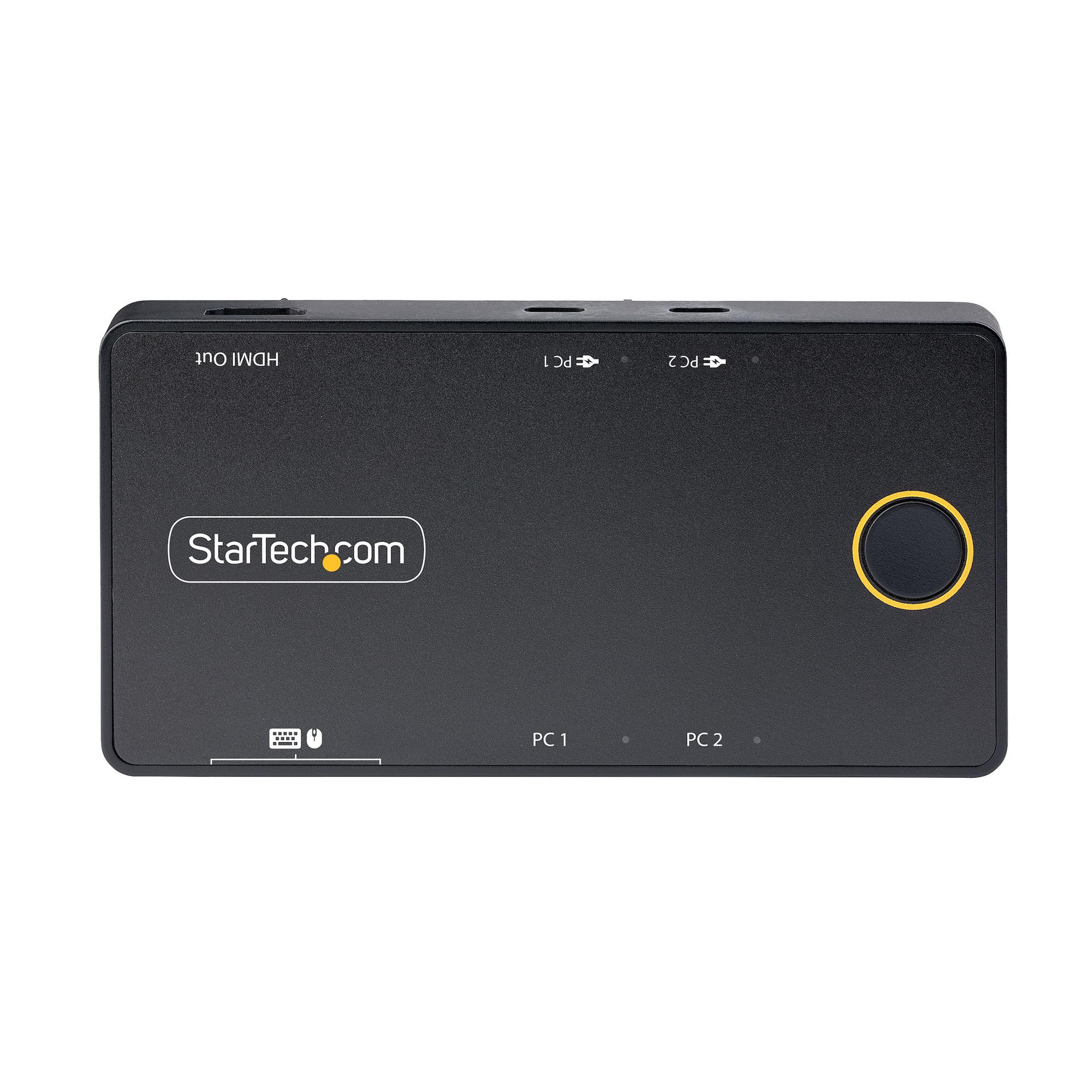 Power, charge, and control two USB Type-C laptops over a single 4K 60Hz HDMI monitor with the StarTech.com KVM Switch. This innovative device allows users to seamlessly switch between two USB-C laptops while sharing a keyboard and mouse, all while keeping both laptops charged.