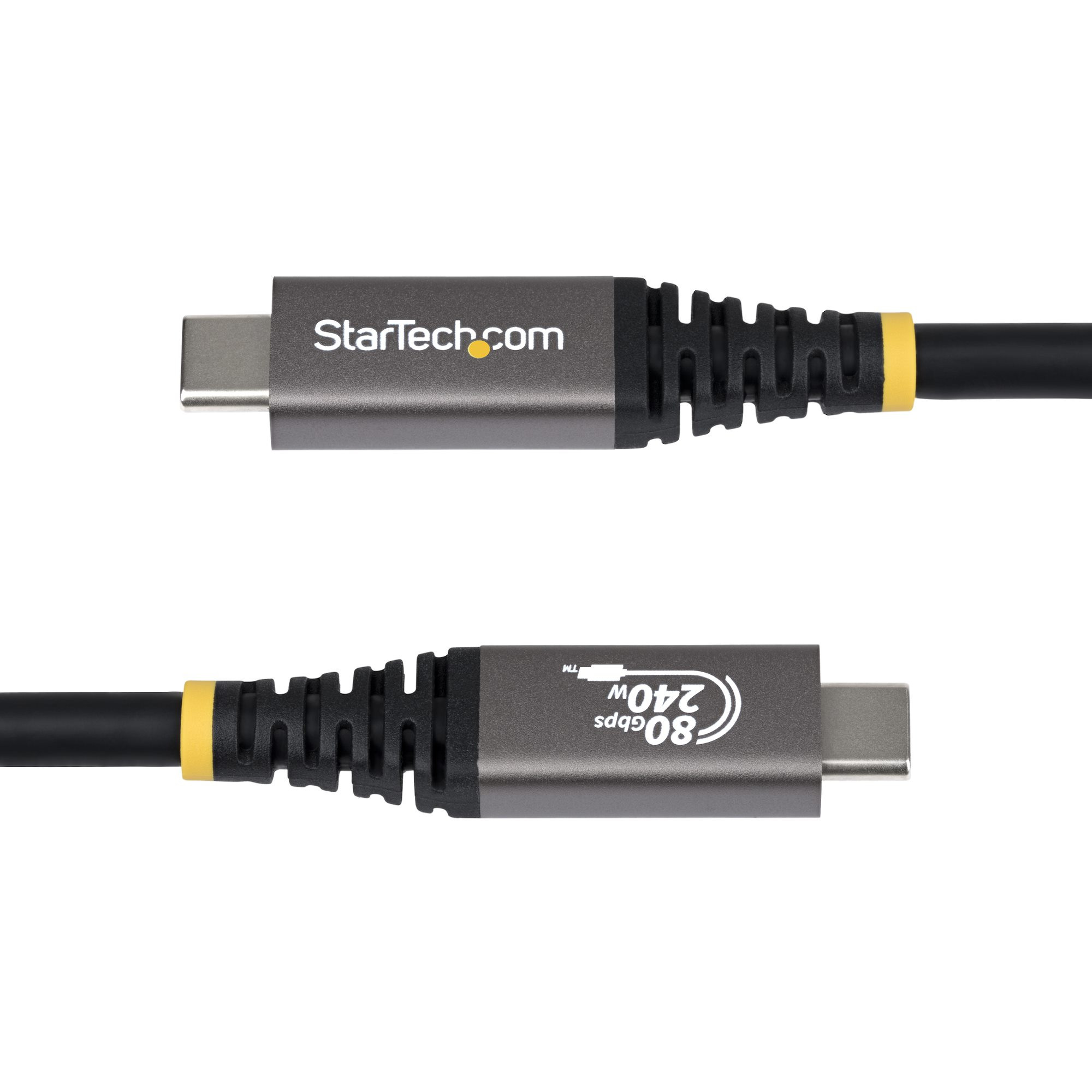 Experience the ultimate in connectivity with the StarTech.com CC5FT80GUSB4CABLE, a USB-IF Certified USB-C cable designed for professionals demanding fast, reliable, and versatile connections. This 5-foot (1.5 meter) cable supports USB4 Gen 4x2 technology, delivering blazing data transfer speeds up to 80Gbps, stunning 8K 120Hz video or dual 4K 120Hz displays via DisplayPort 2.1 Alt Mode, and powerful charging up to 240W with Extended Power Range (EPR) Power Delivery 3.1.