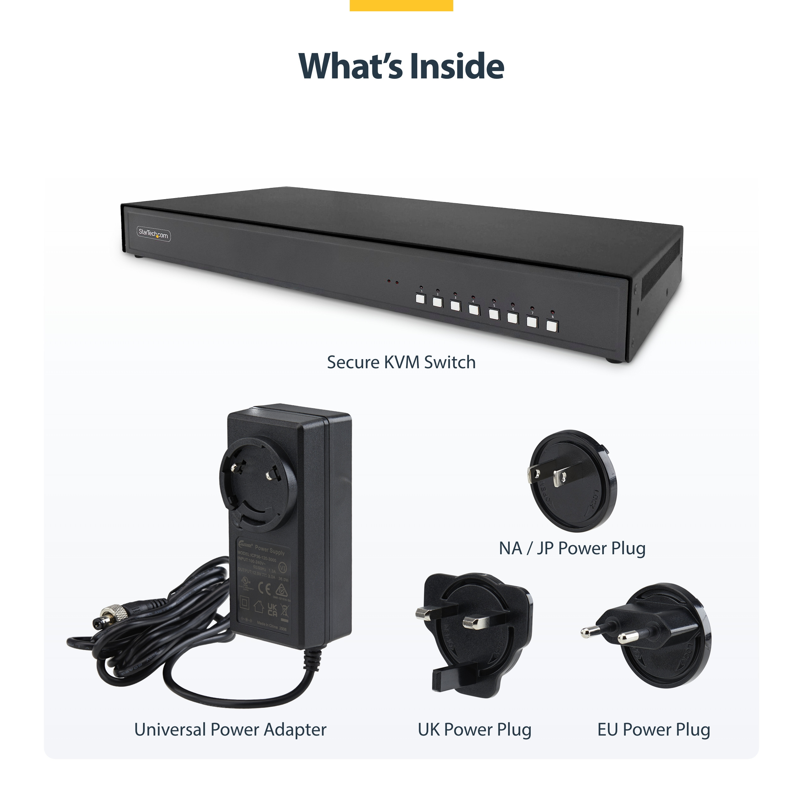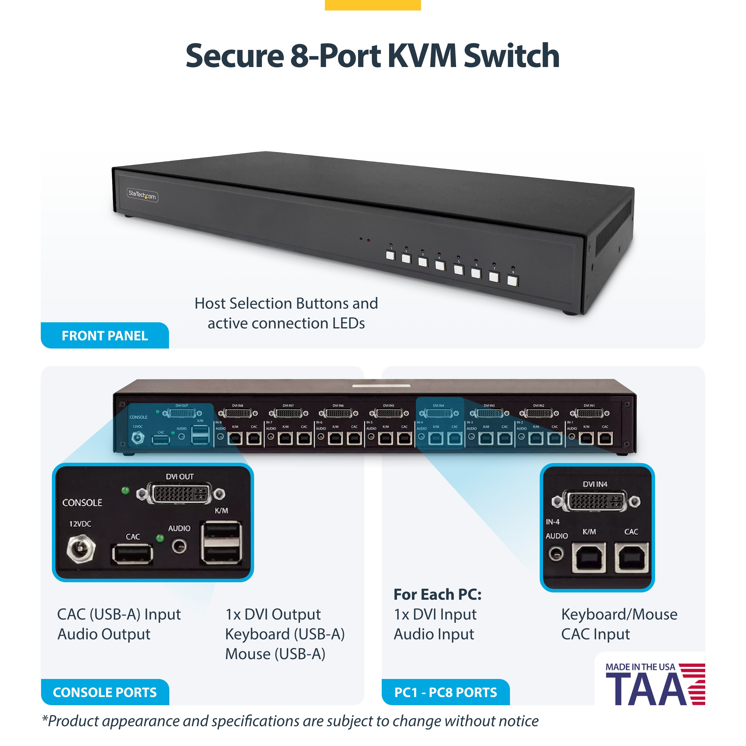 Manage up to eight DVI-enabled desktops, workstations, or servers seamlessly from a single mouse, keyboard, and monitor with the StarTech.com CK4-D108C KVM switch. Designed for high-security environments, this NIAP certified device ensures complete system isolation, preventing any data transfer or leakage between connected systems. Its integrated anti-tamper switches and tamper-evident seal provide robust physical security by detecting and alerting any unauthorized access attempts.