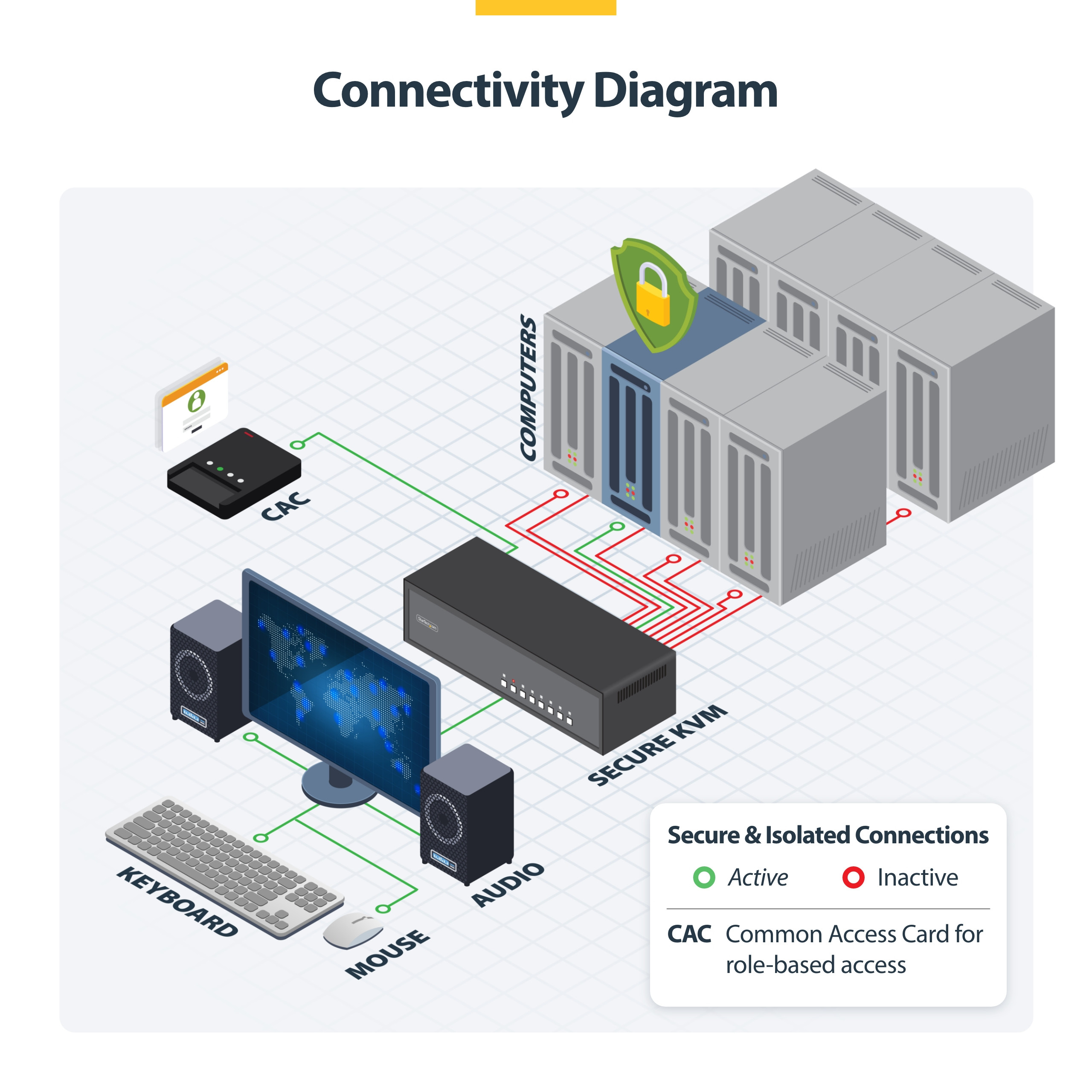 Manage up to eight DVI-enabled desktops, workstations, or servers seamlessly from a single mouse, keyboard, and monitor with the StarTech.com CK4-D108C KVM switch. Designed for high-security environments, this NIAP certified device ensures complete system isolation, preventing any data transfer or leakage between connected systems. Its integrated anti-tamper switches and tamper-evident seal provide robust physical security by detecting and alerting any unauthorized access attempts.