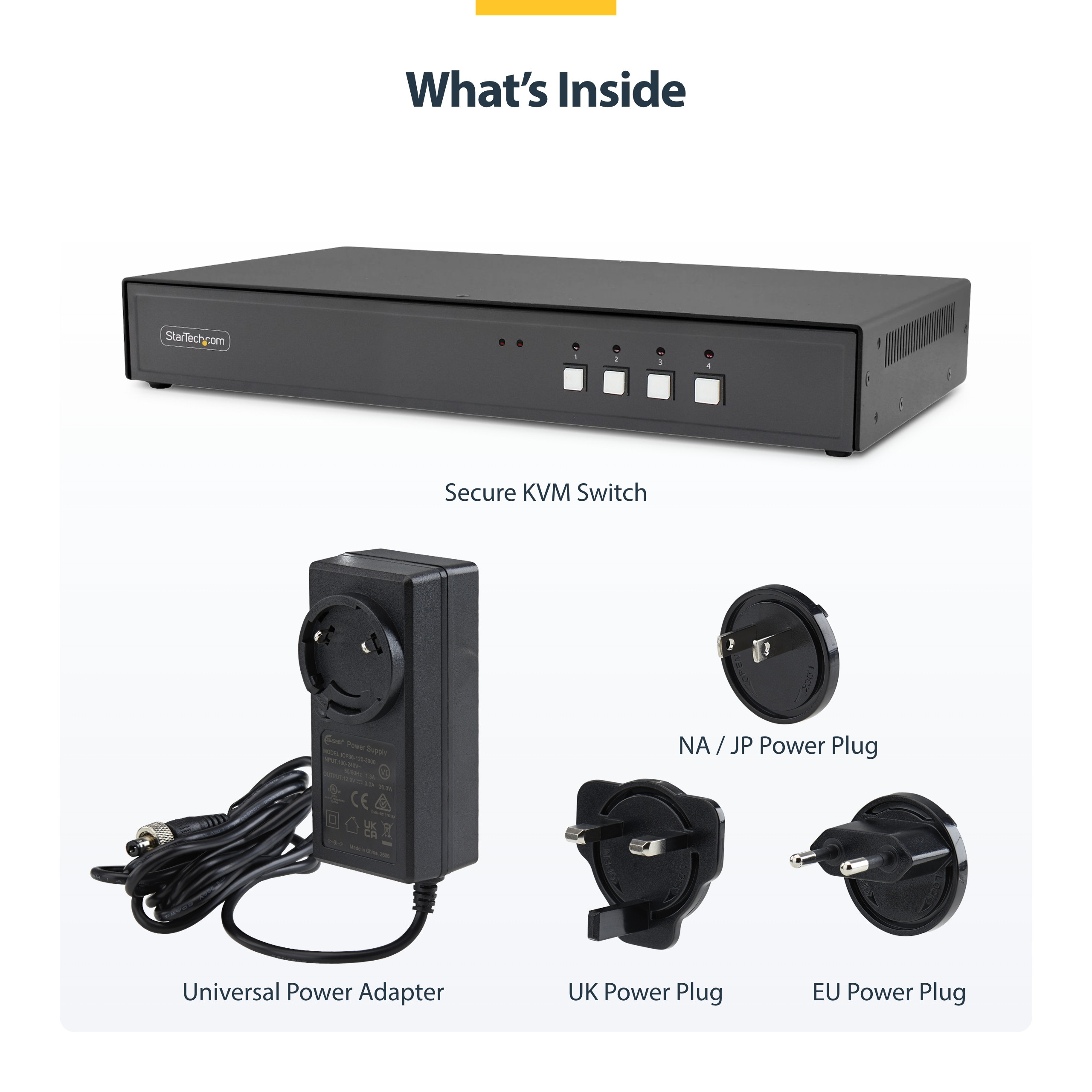 Manage up to four DisplayPort-enabled desktops, workstations, or servers seamlessly from a single mouse, keyboard, and 4K 30Hz monitor with the StarTech.com CK4-P104 KVM Switch. Designed for high-security environments, this NIAP-certified device ensures complete data isolation between connected systems, preventing any data transfer or leakage.