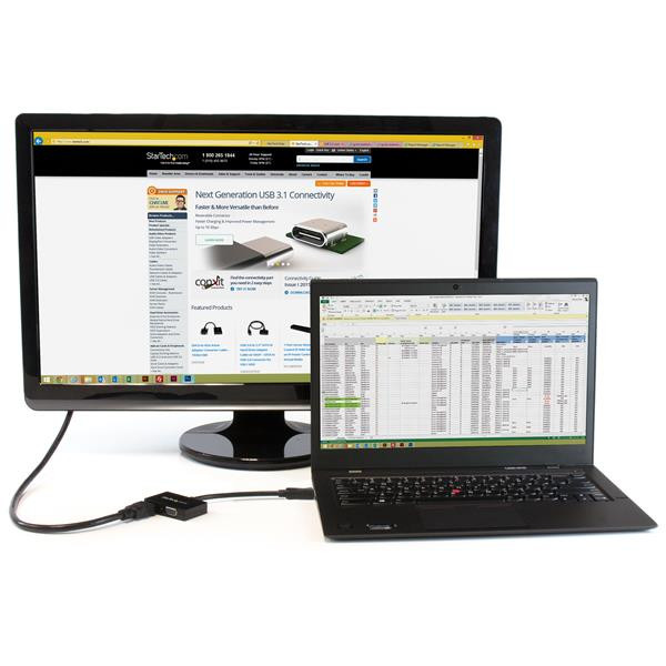 Connect your DisplayPort equipped computer system to an HDMI or VGA display with the StarTech.com DP2HDVGA video cable adapter. This versatile 2-in-1 adapter allows you to connect your DP-enabled Ultrabook or laptop to any VGA or HDMI display, making it the perfect solution for modern boardrooms and classrooms.