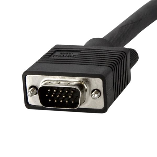 More than suitable for high-res VGA applications (1280x1024 resolution and above), the 90 degree VGA cable eliminates picture "ghosting" and fuzzy images that are common with non-coaxial cables, and provides superior EMI interference protection using ferrite cores near the connector ends.